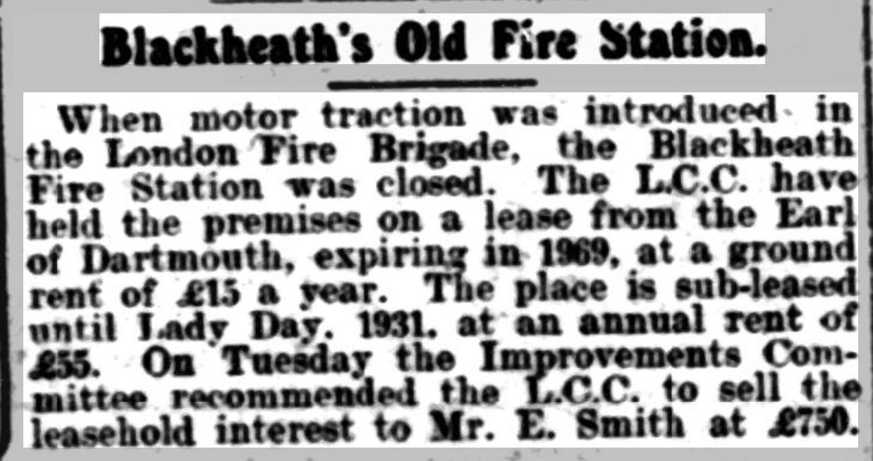 In July 1908, the Lewisham Borough News reported on the building of a new fire station on Charlton Road, which was to house a motorised fire engine. “We understand that the Blackheath station, where calls are very few, will probably then be closed. As the new building will only be about a mile and a quarter away, the district should be quite as well covered, though the firemen at Blackheath – where horses are still in vogue – are somewhat sceptical.”