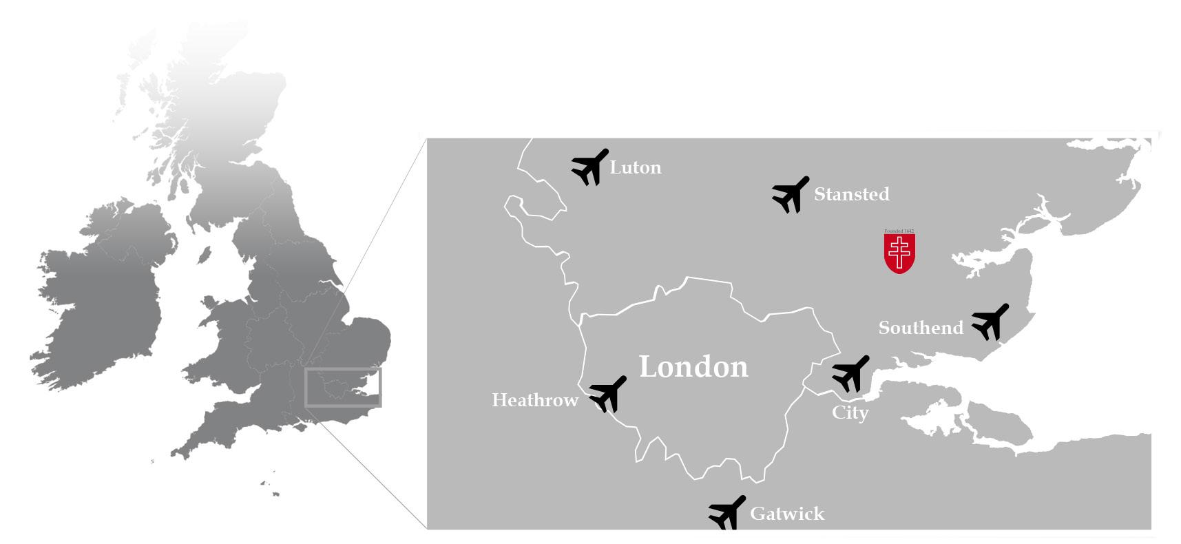 • 30 minutes from City Airport, 30 minutes from Stansted Airport and one hour from Heathrow and Gatwick international airports