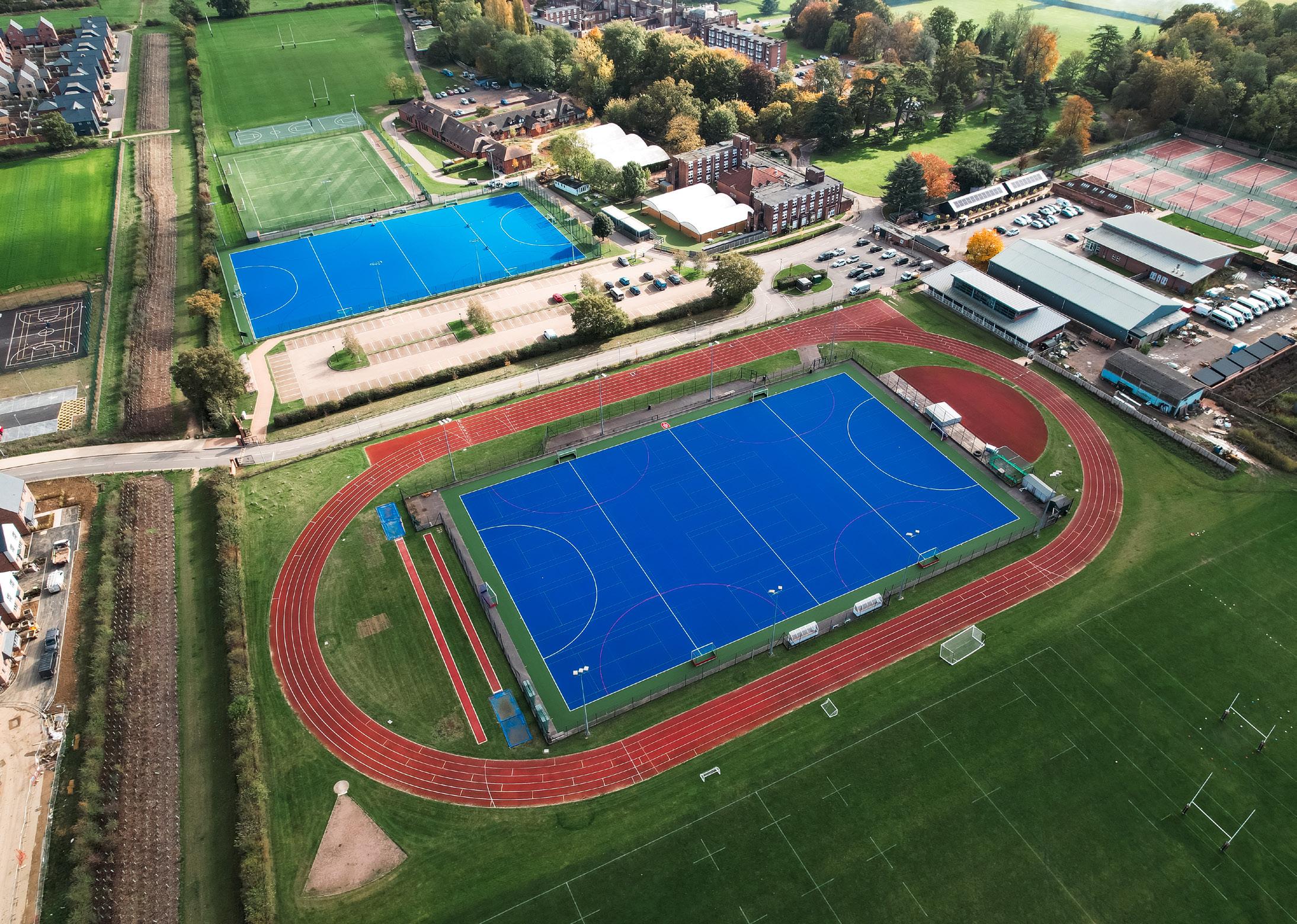 Students benefit from outstanding facilities, many of which are floodlit. These include: a Learn-to-Ride centre with two horse simulators and an arena; 8 netball courts; 2 all-weather hockey pitches; 2 outdoor basketball courts; 5 rugby pitches; a 3G rugby and football training pitch; 7 football pitches; an athletics track; 4 cricket wickets with indoor and outdoor nets; a 25m, 6-lane indoor swimming pool; 10 tennis and netball courts; a Sports Hall, and a state-of-the-art Fitness Suite featuring a full range of cardiovascular equipment and free weights. For golf, students train at Little Channels, which offers a driving range and a nine-hole course.