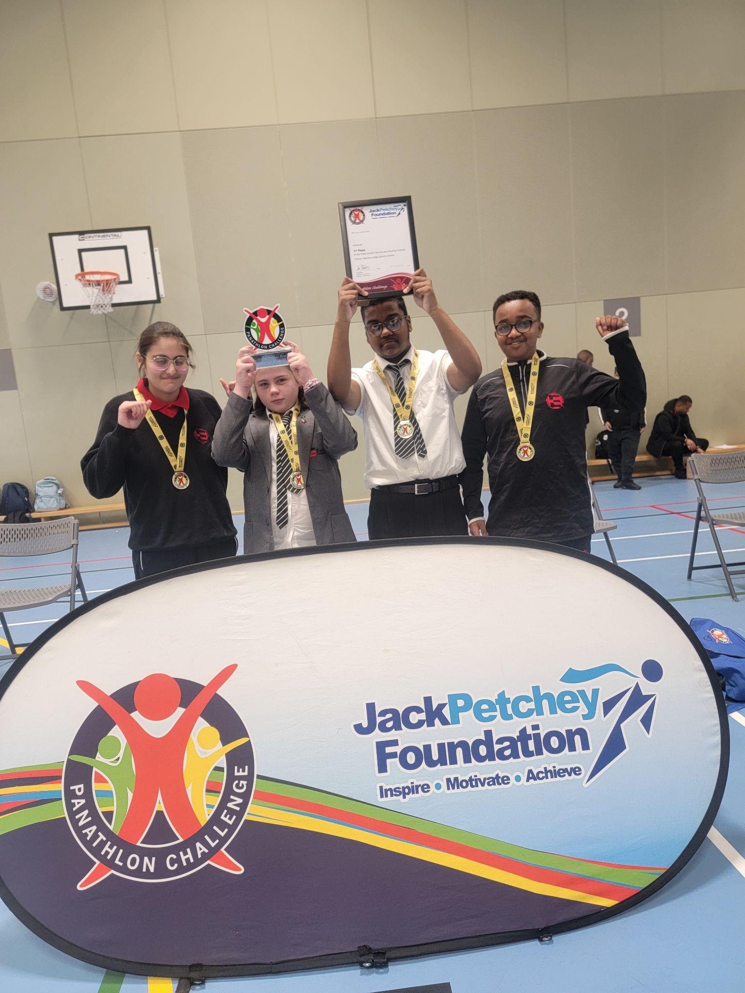 CongratulationstotheEastleaBTeam:FahimGazi,HareemAbid, Anas Mao and Lexci Worboyes. They were unstoppable and managed to secure a gold medal at the Panathlon Boccia competitiononThursday. Two teams from Eastlea headed down to Harrow Lodge Leisure CentreinHornchurchandcompetedagainst10teamsfromacross theBoroughofBarkingandDagenham.EastleaBTeammadeit all the way to the final and after a nail biting game managed to beatSydneyRussellschool4-2.