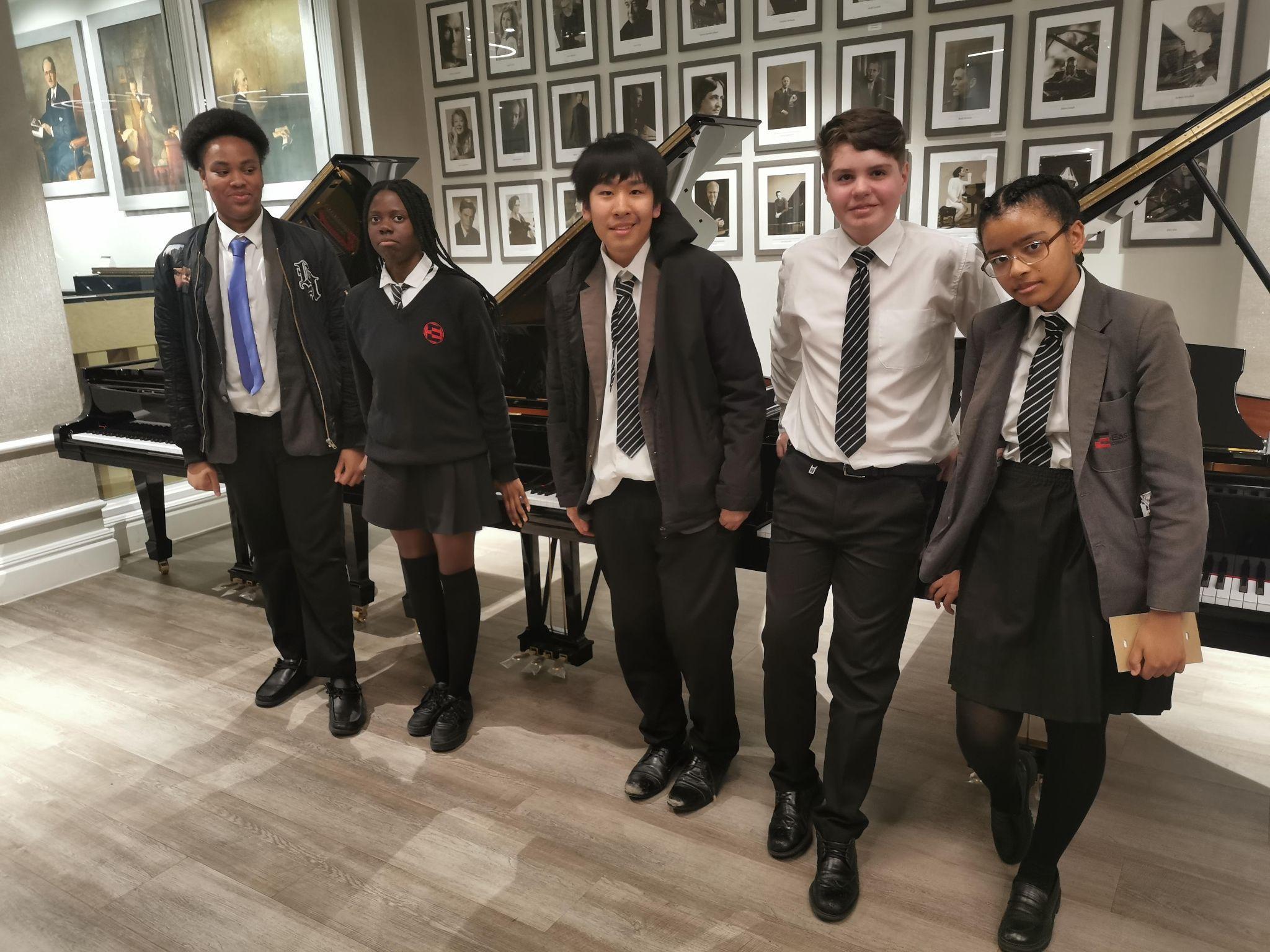 On Tuesday 30th April, 6 lucky piano students visited Steinway Hall in central London for a unique masterclass with world-famous pianist, Alexis Ffrench. The students were able to try out the pianos, some of them costing over £300,000! Alexis French worked with the groupand composed pieces with them, based on issues that meant the most to them including climate change and world conflict. One of our year 9 students, Cristaline, even performed for Alexis on a Steinway Model D Concert Grand piano. It was a brilliant afternoon that the students will remember forever.