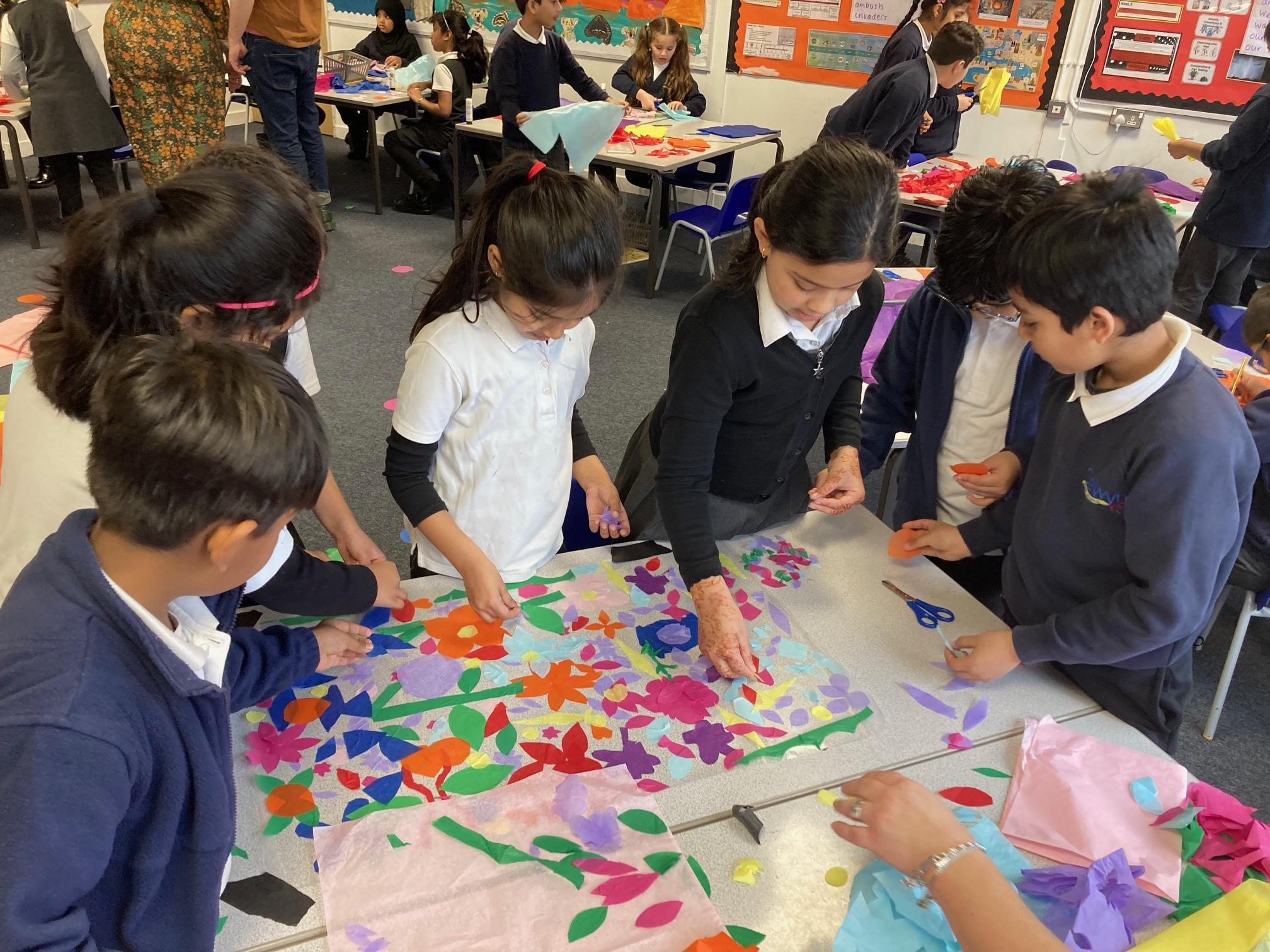 ThroughANew Direction's touring programme, we broughtAnimateArts to Selwyn School, where they worked withYear 3 children in our Community Hub.Their PaperAllotment project was delivered through a multi-sensory, interactive performance in which children from Year 3 made vegetables out of paper to fill their allotment installation. In the afternoon, the team fromAnimateArts came to our classrooms, and the children made translucent artworks based on flowers, which were installed on our classroom windows.