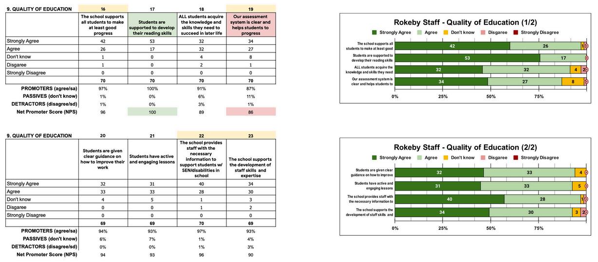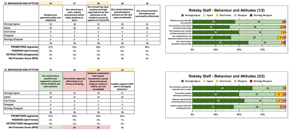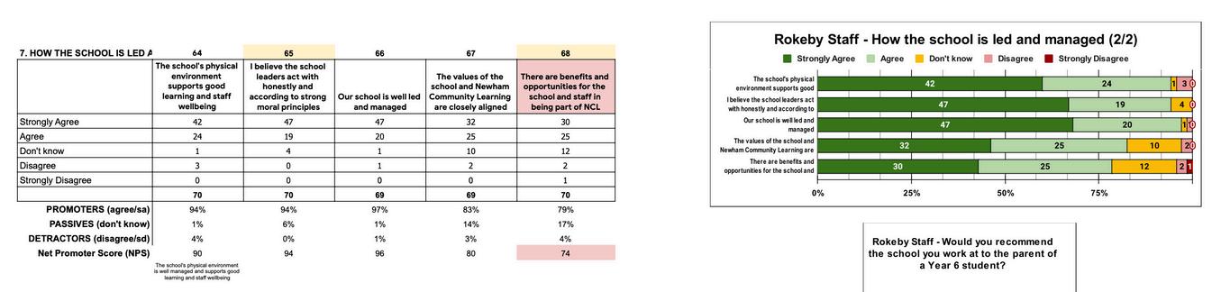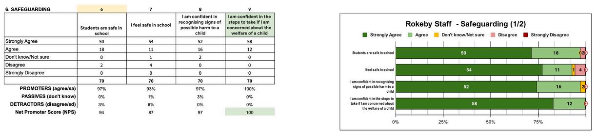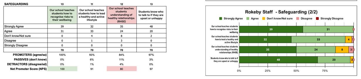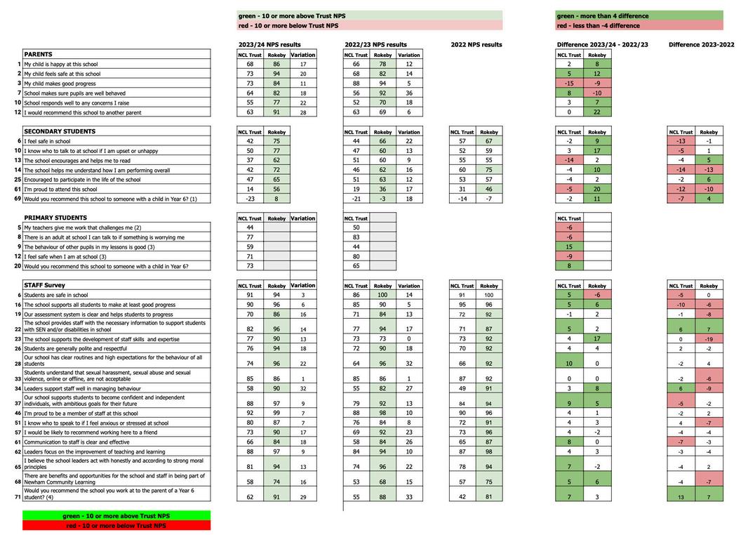 The Net Promoter Score (NPS) was used to analyse 36 key survey responses in the areas of safeguarding, quality of education, behaviour and attitudes, personal development, management and leadership NPS is a metric used for measuring customer satisfaction and loyalty: more specifically, the willingness to recommend to others.