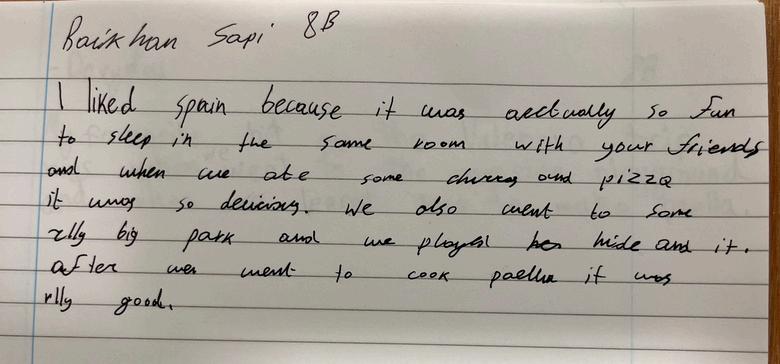 Last week Ms Allan, Mr Lastiotis and I took 22 Y8 Spanish students to Valencia. It was a great experience for all of us. We made the most of the time available and had lots of fun and valuable experiences We ate in a restaurant, went shopping in the market for food, ate 'churros con chocolate' (a famous Spanish stick doughnut with chocolate sauce) We saw the iconic buildings of the Arts and Sciences Park where we visited the Science Museum, which was showing an exhibition about space, and the natural world. We also had time to play at Gulliver's park before heading to the cookery school to make Spanish Tortilla, Paella and lemon cake.