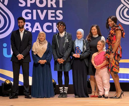Sarah Bonnell School was awarded the Team for Life Award by Greenhouse Tennis at the Sport Gives Back Awards 2024 This term has witnessed a number of incredible achievements Tennis students Manel and Michelle went on stage with our Greenhouse Tennis Coach, Tom, Ms. Potter (Headteacher), and Ms. Bibi (Deputy Headteacher) to receive the prestigious award. The award was presented by Ellie Simmonds, Olympic gold medalist and swimming champion, and Ama Agbeze, Olympic gold medalist and netball champion. The award recognized the excellent tennis coaching programme we deliver at school in partnership with the Greenhouse Tennis Charity and our outstanding coach, Mr Sippy