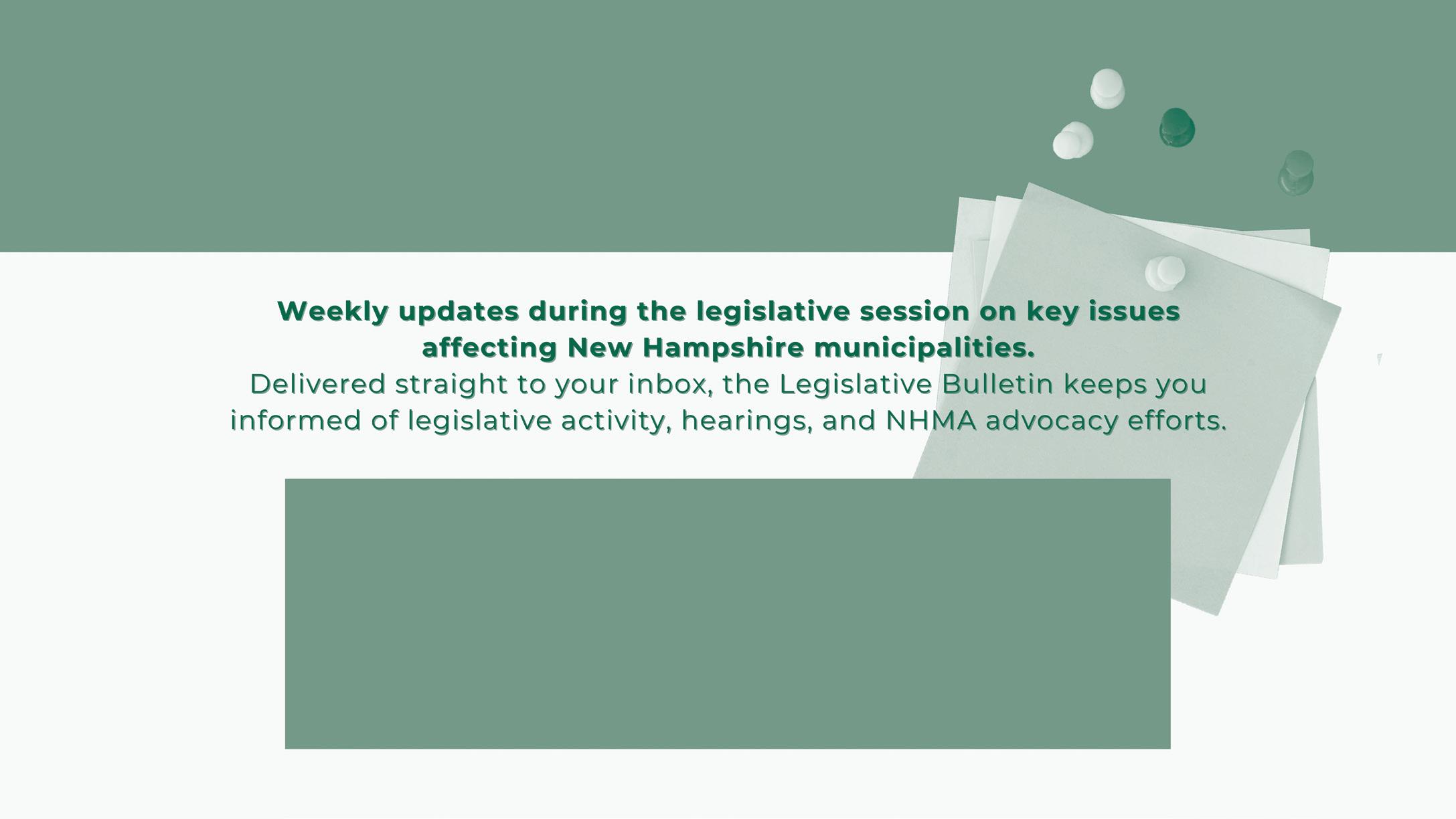 Due to magazine publication deadlines, some of the bills referenced above may be killed or retained by the time you read this. The best way to stay up to date on the biggest bills impacting municipalities is by subscribing to NHMA’s weekly Legislative Bulletin. Every Friday during the legislative session, NHMA emails out the Bulletin, which provides updates, previews, and reviews of key actions taking place in legislature. Members who haven’t already subscribed to the Bulletin can do so through the member portal. Members can subscribe to the Bulletin through our member portal at: https:// nhmunicipal.weblinkconnect.com/portal
