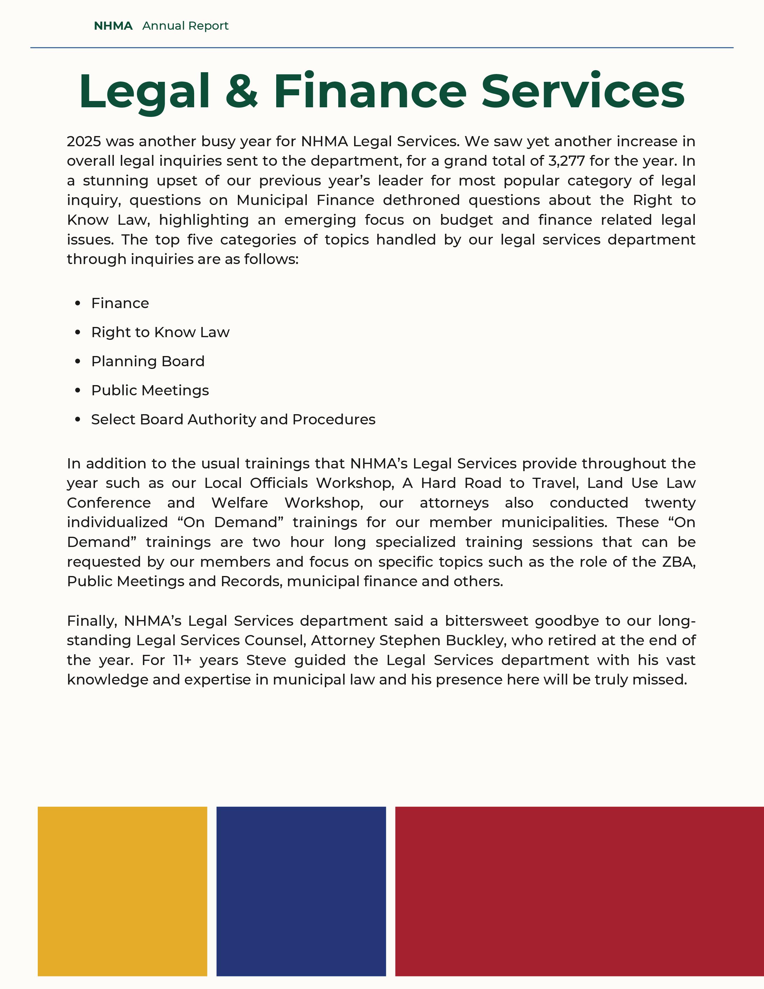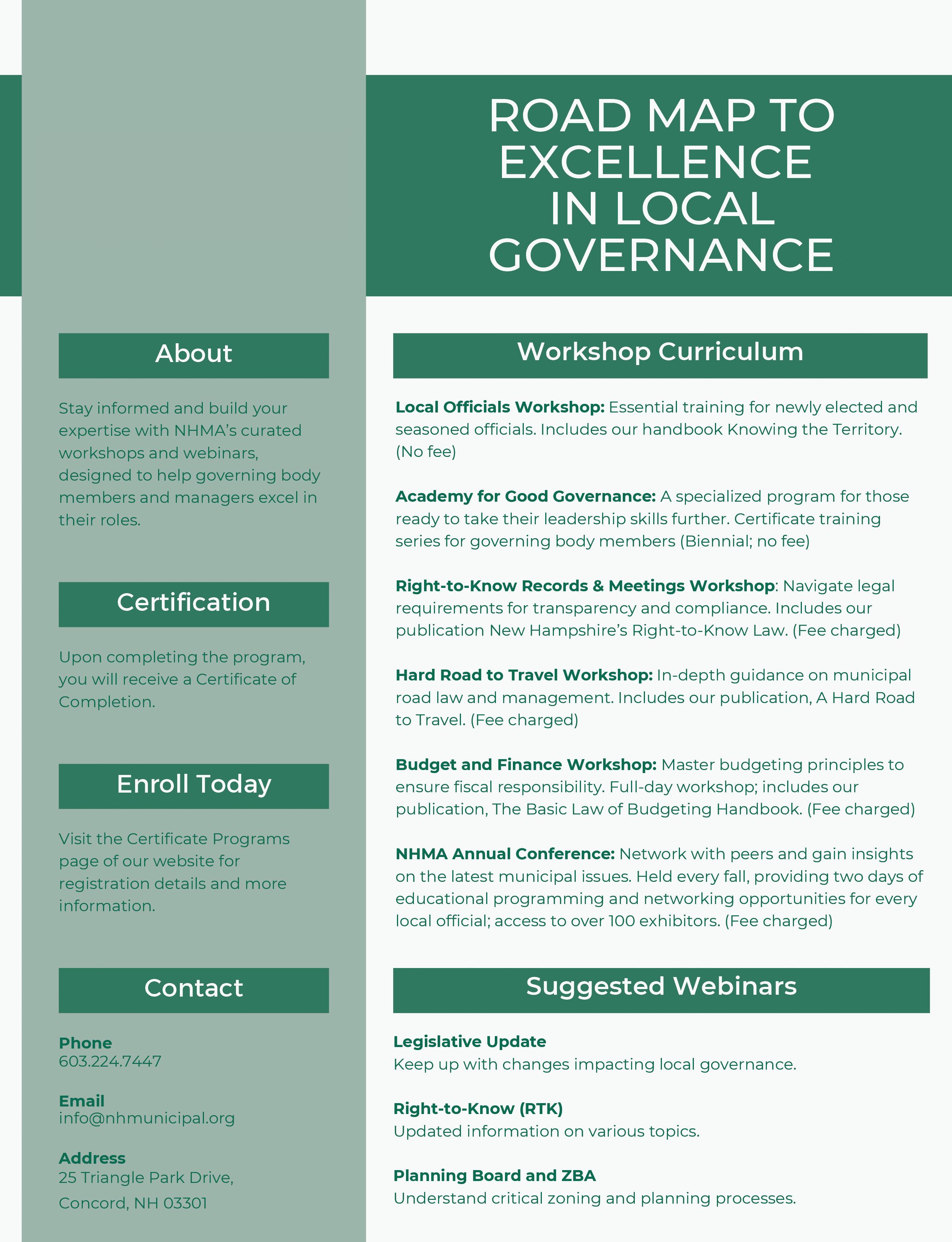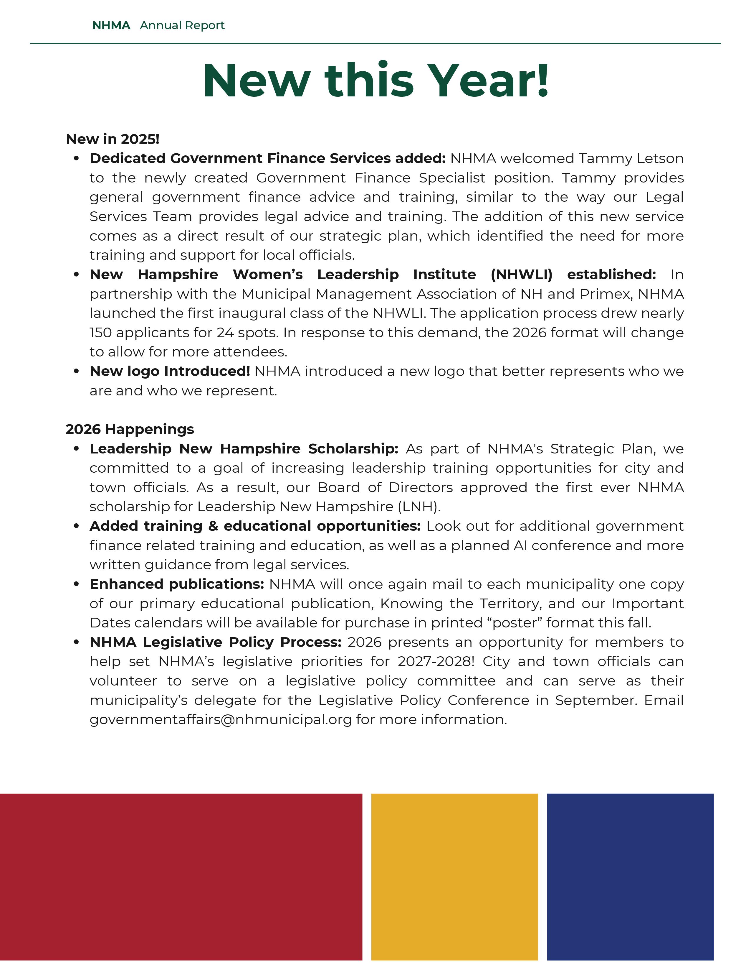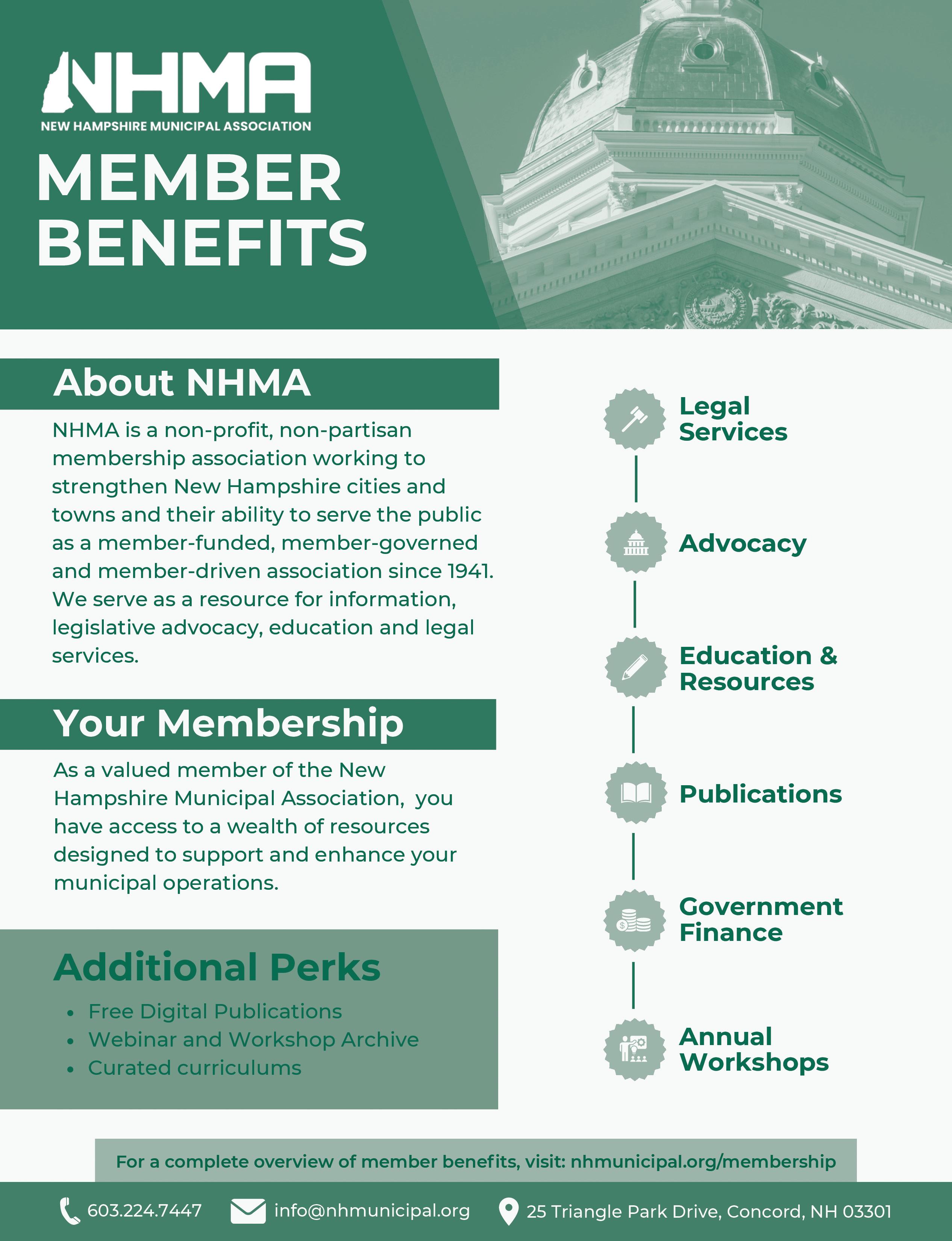 For the most up-to-date event and training information, please visit the NHMA website at www.nhmunicipal.org. Event times and dates are subject to change. Thank you.