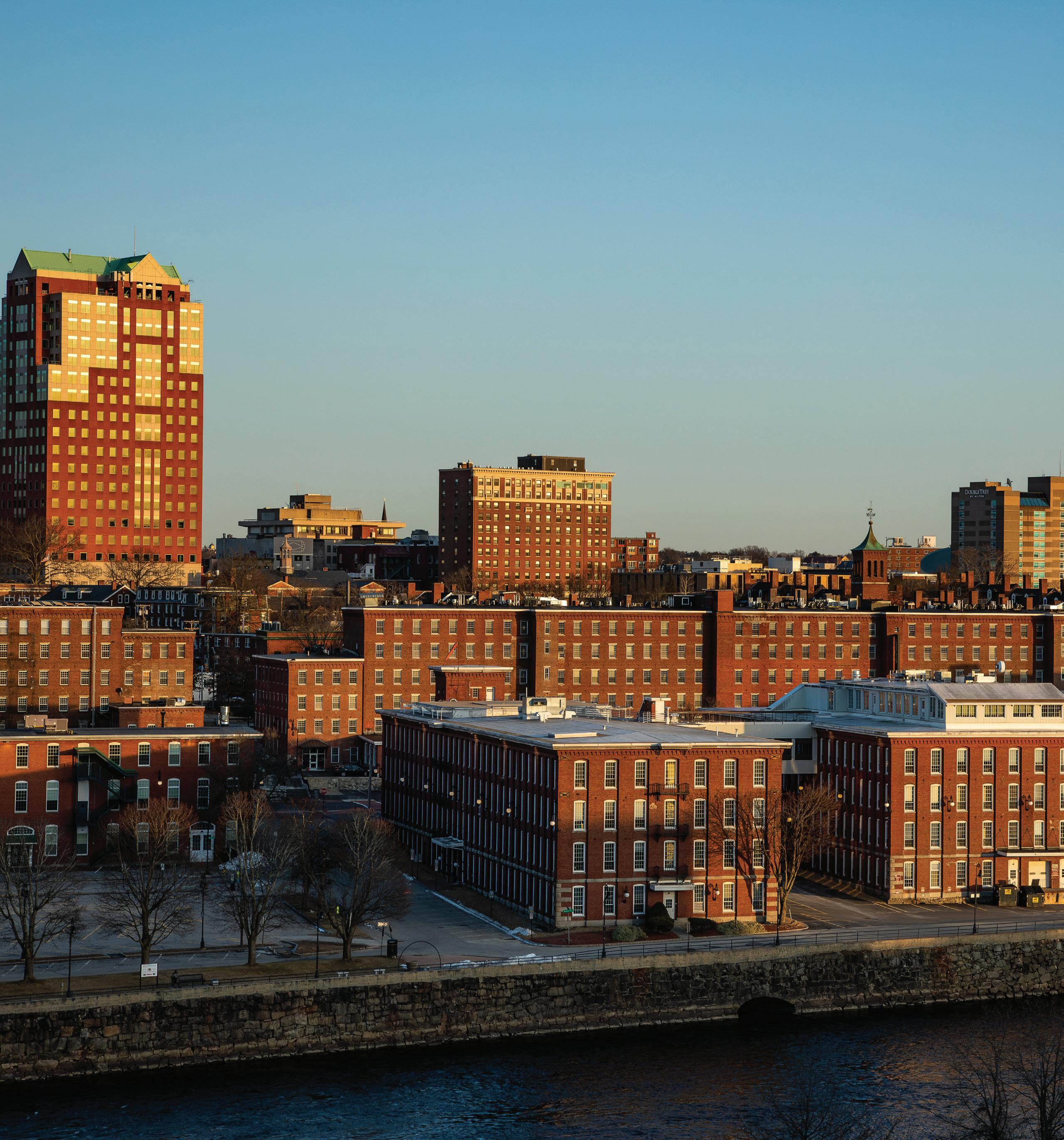 Front Cover: Manchester, New Hampshire at sunset in late winter.