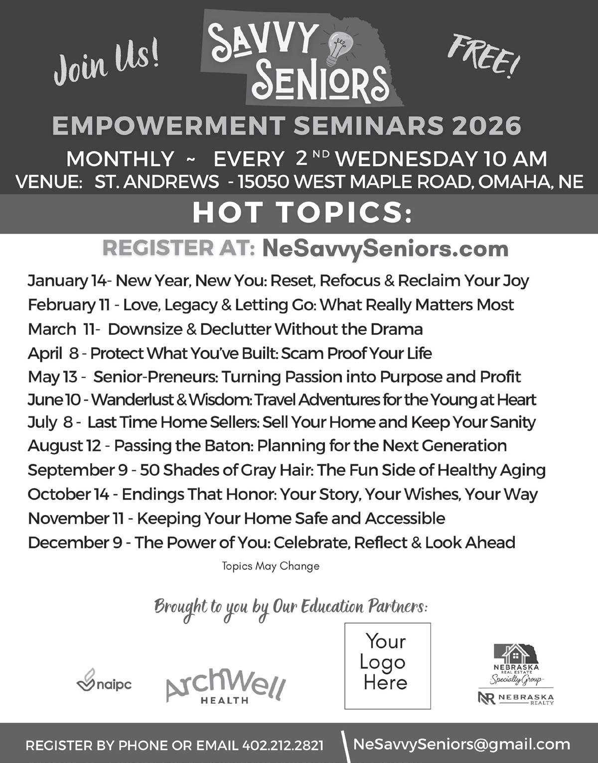 For more information, email Nancy at flahertyconsulting@cox.net or call/text her at 402-312-9324.