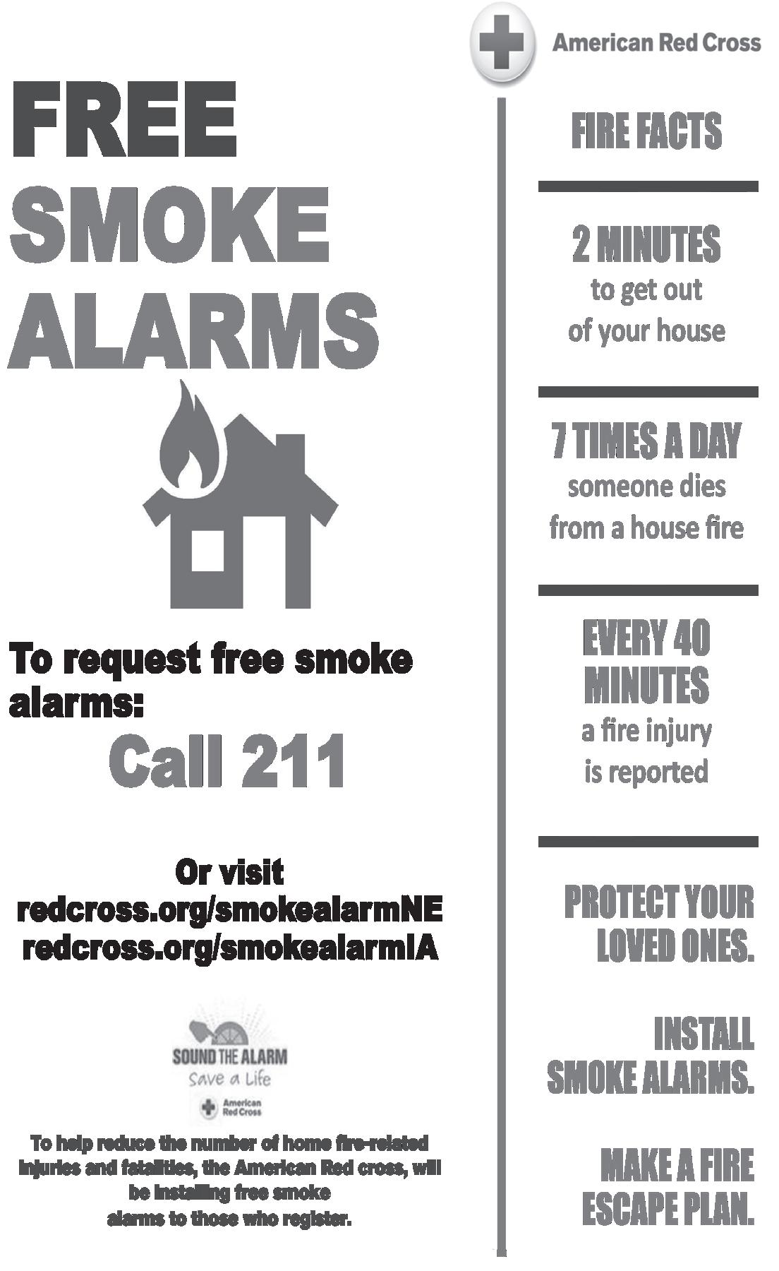 The Omaha Fire Department’s Public Education and Affairs Department will install free smoke and/or carbon monoxide detectors inside the residences of area homeowners.
