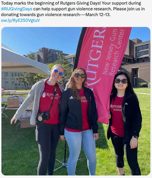 This progress report aimstosummarizeGVRCresearch,publications,active externallyfundedgrants,researchprojectsfundedbytheGVRC, communityoutreachprojectsandpartnerships,andcommunications conductedbytheNewJerseyGunViolenceResearchCenter(GVRC)during FY25. The GVRC's mission is to conduct and fund cutting-edge scientific research on gun violence prevention and serve as a voice to make scientific information available to all communities impacted by gun violence.