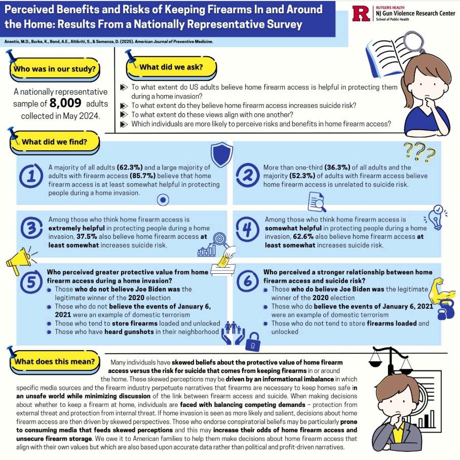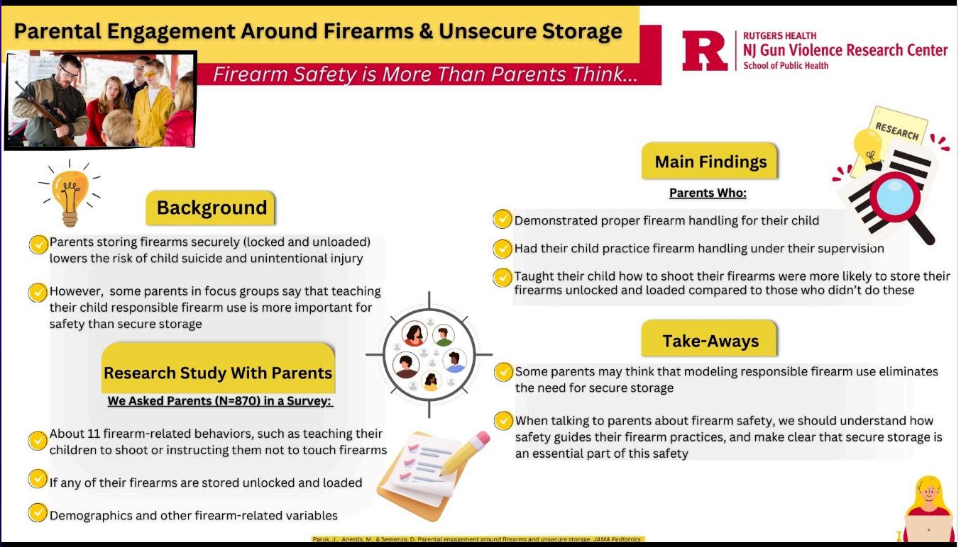 "Some parents may believe that modeling responsible firearm use negates the need for secure storage,” said Jennifer Paruk, the study's lead author and a postdoctoral researcher at the New Jersey Gun Violence Research Center at the Rutgers School of Public Health. “But storing firearms securely is a part of firearm safety " ReadtheRutgersTodayreleasehere.