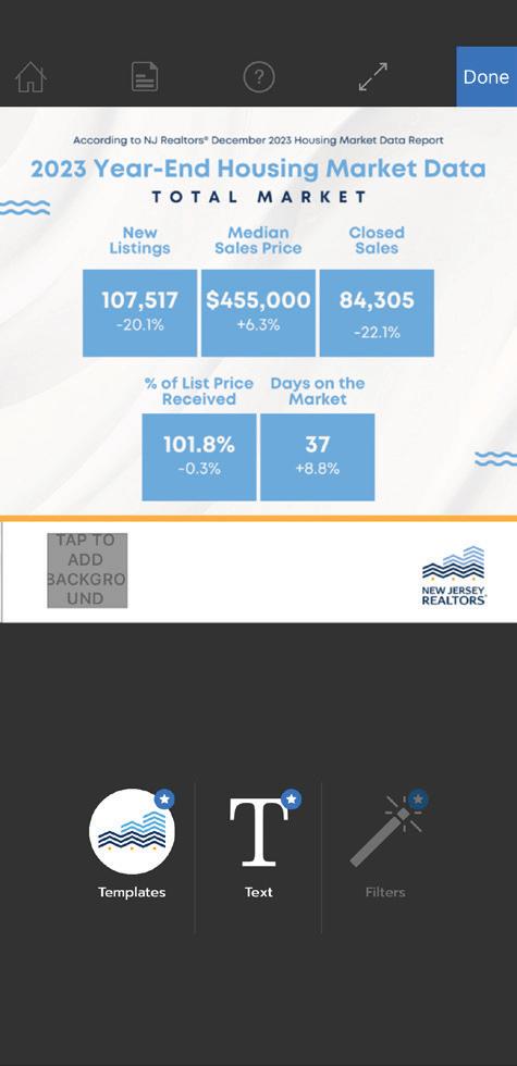 3. Provide local market updates on social media. Only New Jersey Realtors® have access to local municipality reports—take this opportunity to promote yourself as the ultimate local market expert for the areas you serve. You can design a custom social media graphic or use New Jersey Realtors® free monthly housing market assets through Photofy.