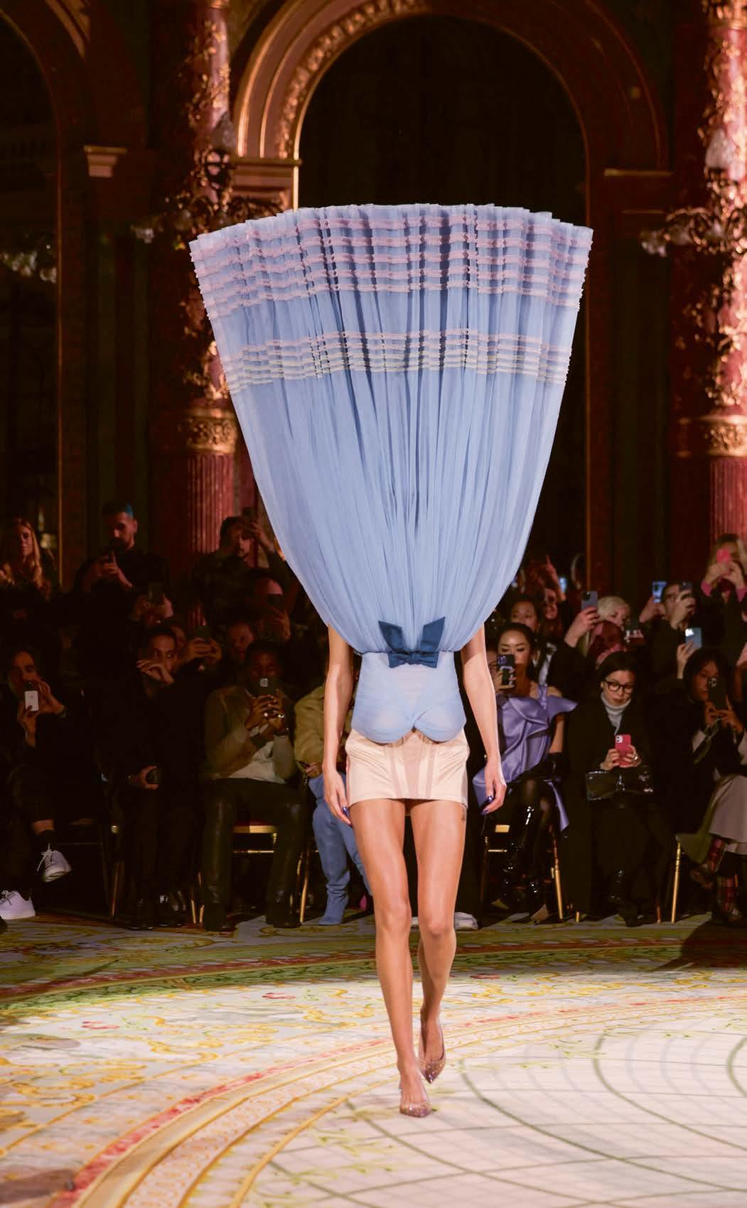 ❸ V kolekci Spring/ Summer 2023 si Viktor & Rolf pohráli s perspektivou a tylové šaty na modelkách otočili všemi směry.