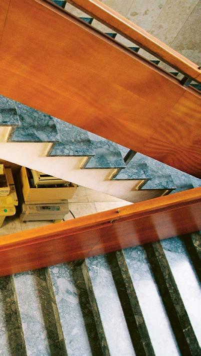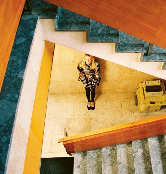 ❷ Schodiště vedoucí ze showroomu ke kancelářím v patře je dekorováno nástěnnou malbou Lu Jindrák Skřivánkové.