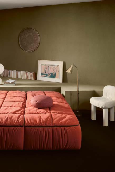 ❸ „Jako milovníci designu jsme pro výchozí bod zvolili přírodní barevnou paletu s výraznými akcenty. Celému prostoru dominuje terakotová, tmavě zelená a kobaltově modrá barva. V detailech představují nosné prvky