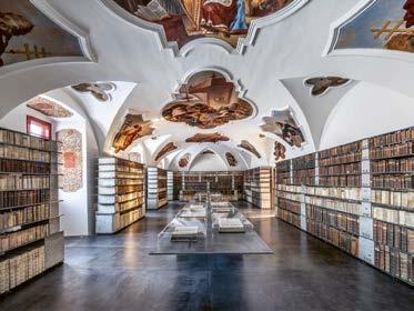 ❷ Knihovna umožňuje zapůjčení literatury k četbě a prohlížení na místě, čtenářský kout dotváří a zútulňuje dílo Kristiny Fingerland zavěšené u stropu.
