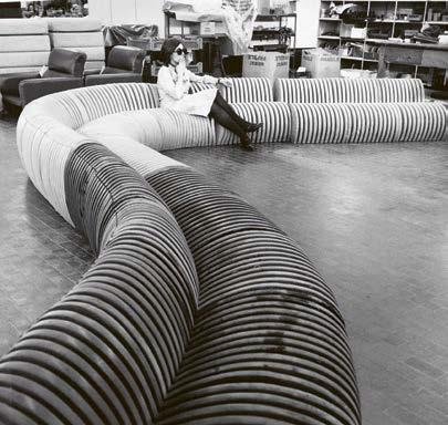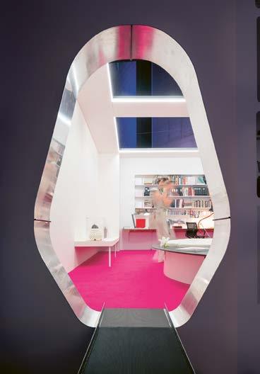 ❶ Populární křeslo Alp, které navrhl designér Martin Hirth pro značku FEST Amsterdam, tu mají vystaveno ve výrazné oranžové barvě.