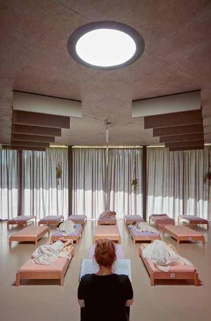 ❸ Ve variabilním auditoriu se pořádají besedy a workshopy pro školy nebo tiskové konference. Konají se zde ale také lekce jógy pro veřejnost, jógamatky jsou na místě k zapůjčení.