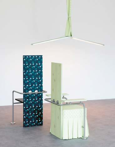 Mantinelem se architektům kromě poměrně velké rozlohy stal i ne příliš vysoký rozpočet. „Využili jsme proto to nejdražší, co už na místě bylo — původní architekturu Veletržního paláce ukrytou za řadou paneláží, zatemnění otvorů a instalačních předstěn. To vše jsme zbořili a zrecyklovali,“ přiznávají No Architects. „Zpřístupnili jsme okna, otevřeli průhledy, dali promluvit rastru železobetonového skeletu, členění oken a jejich barevnosti. Na co nám nevystačily fragmenty demontované paneláže, to jsme si našli ve sklepích a skladech Národní galerie Praha: sesbírali jsme zdemolované polotovary ze starších výstav a instalací, zkombinovali je, zkrátili jim nohy, přidali madla, přetřeli, převrátili a vdechli jim druhý život.“ ●