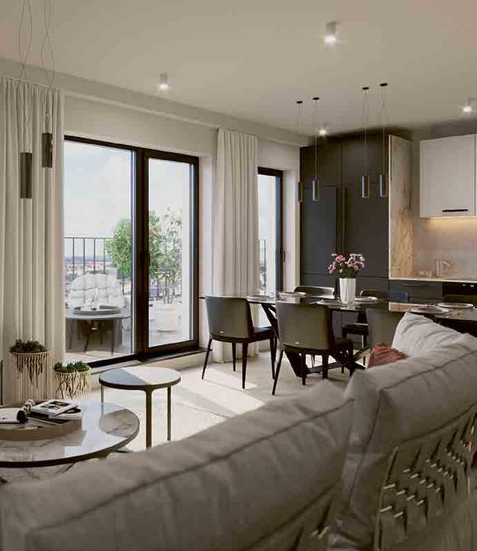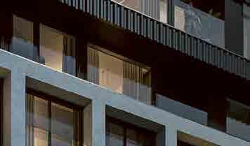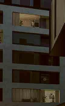 jsou monolitické. Členitost budovy také umožnila navrhnout více variant rezidenčního bydlení. Byty od 1+ kk po 4+ kk jsou svými zelenými terasami orientovány převážně do společného parku ve „vnitrobloku“ a krajní, prostorné apartmány mají navíc velkorysé střešní terasy.