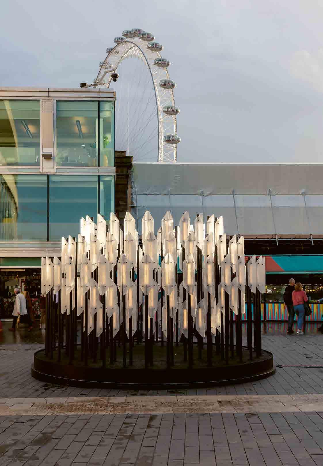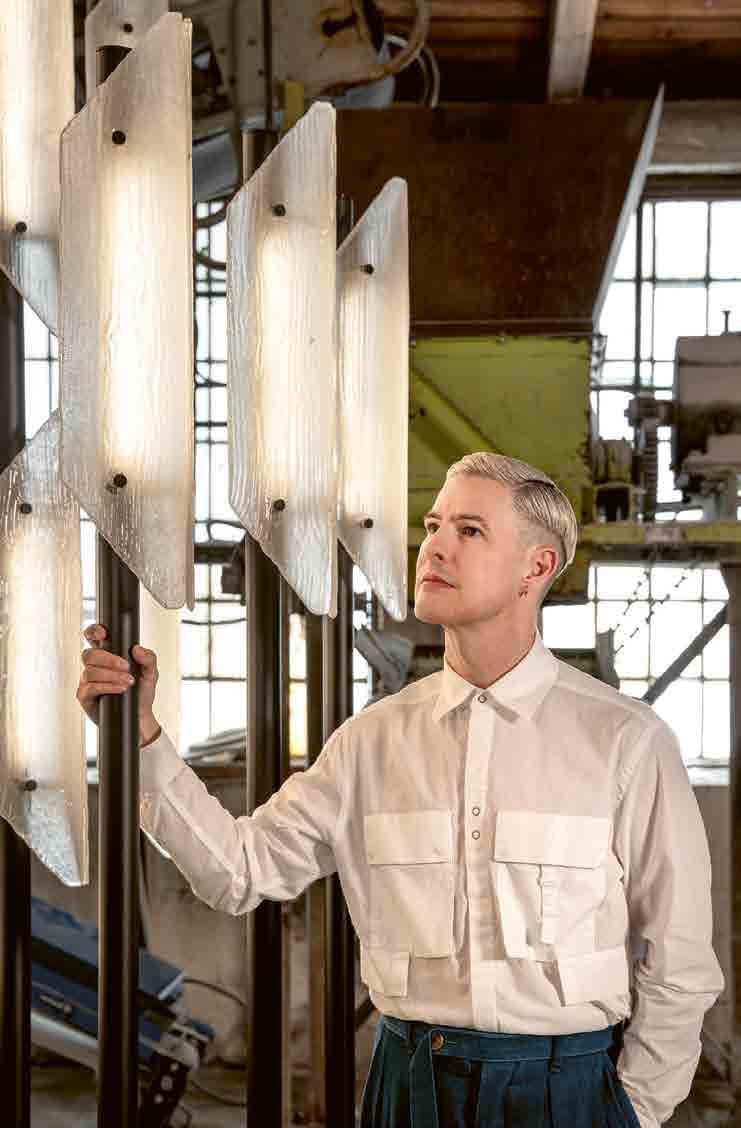 Od sedmi let hrál Lee divadlo, a to mu jistě dodalo sebevědomí i v rámci vlastní prezentace. Usiluje vždy o to, aby mohli lidé interagovat s jeho díly na další úrovni a vnímat je jako součást určitých scénografických celků. A právě v projektu Beacon se všechny tyto kvality spojují dohromady. „Výsledek je velmi interaktivní. Většina lidí, kteří kolem objektu projdou, ví o designu jen velmi málo. Rád bych tímto způsobem vnesl design do veřejného prostoru, protože je to určující prvek prostředí, které nás obklopuje. Design utváří naše životy, i když si to často vůbec neuvědomujeme. Je skvělé, že dobrý design může být i ve veřejném prostoru, nejenom ukrytý v soukromých domech nebo galeriích. Značka Brokis a iniciativa Material Assemble, která se dlouhodobě zabývá udržitelností v materiálech, k tomu velmi napomohly,“ říká Lee. Gigantický lustr, sestavený z 292 segmentů lehaného skla s otiskem betonu, je zároveň kinetický. Vždycky, když se rozezní zvony Big Benu, tak se spustí pulzující světelná hra, které české sklo dodává unikátní řemeslnou materialitu. „V díle je tedy otisknuto vše — jeho okolí, historie místa, času, budovy, minulost, současnost i budoucnost,“ uzavírá Lee Broom. Instalace Beacon bude v Londýně k vidění až do 2. února 2026. ●