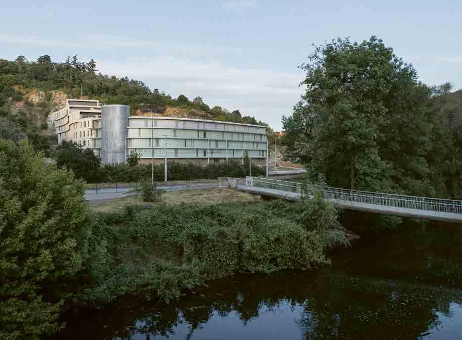 Jak přirozeně zasadit novou architekturu do krajiny, ať už městské, nebo volné, vědí moc dobře v ateliéru DRNH. Skvělou ukázkou takového přístupu je krytý plavecký bazén v Litomyšli zastřešený terénní vlnou, projekt dokončený roku 2010. Do jejich portfolia nyní přibyla novostavba bytového domu Diorit, zasazená do dlouho nevyužívaného průmyslového areálu v údolí řeky Svratky, mezi brněnskými městskými částmi Komín a Bystrc. Za ty roky tady příroda vytvořila nový, dynamický ekosystém.