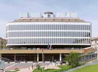 Budova Obchodní komory v Turíně byla postavena v letech 1964 až 1972 Carlem Mollinem ve spolupráci s architekty Carlem Graffim a Albertem Galardim a inženýrem Antoniem Migliassem. Futuristický vzhled stavby, která je opláštěna kovovou vrstvou s geometrickou mřížkou zaoblených oken, má lehce konvexní zakřivení. Ve své době aktualizovala Mollinův organický design do nové podoby kosmického věku. Dnes je stále využívána ke svému původnímu účelu a uvnitř se nachází spektakulární točité schodiště s centrálním osvětlením.