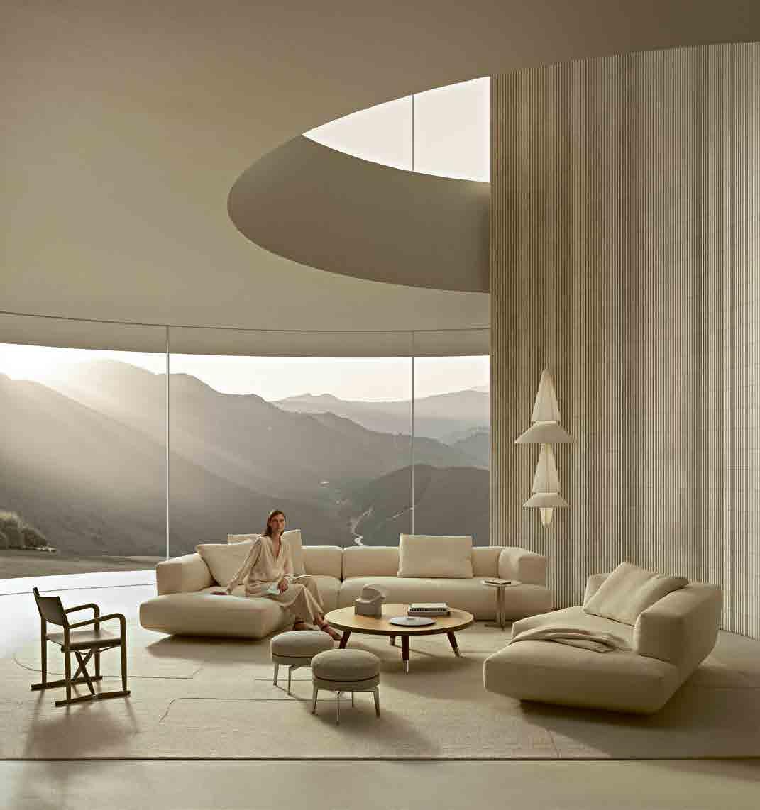 FLEXFORM Jemné kontury křesla Eri, které pro italského výrobce nábytku navrhl Fumie Shibata, jsou inspirovány zdviženými klopami saka. Ručně soustružené nohy nesou čalouněnou skořepinu, jež obepíná měkké polštáře sedáku a opěradla vyplněné husím peřím. Tyto prvky jsou navrženy přesně tak, aby navozovaly příjemný pocit relaxace. Křeslo je k dispozici v široké škále látkových a kožených čalounění v zajímavé souhře možných kombinací mezi skořepinou a polštáři. Prodává Stopka, stopka.cz, flexform.it.