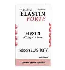 ELASTIN N-MEDICAL FORTE je první originální tobolka, která obsahuje přírodní hydrolyzovaný bioaktivní elastin. Elastin se přirozeně nachází v našem těle a s věkem postupně ubývá, což má za následek ztrátu elasticity pokožky. Elastin N-Medical Forte je vhodný ke každodennímu užívání. Je vhodný do kombinace s Hyaluron N-Medical (kyselina hyaluronová pro vnitřní užívání) i kolageny.