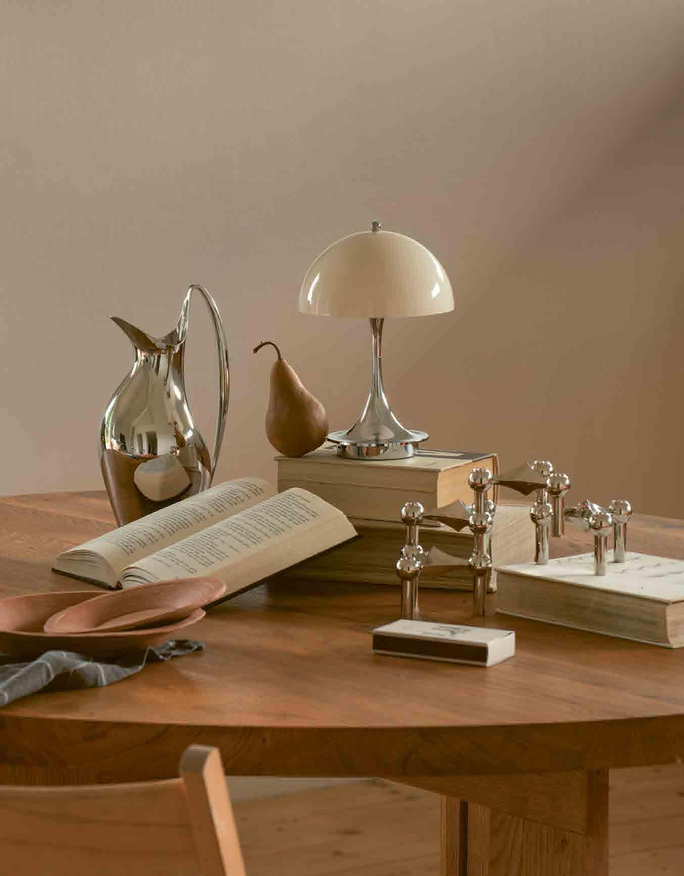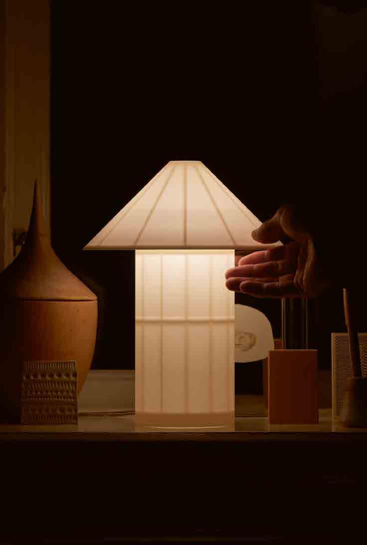 Přenosná lampa Vuelta v podobě elegantního oblouku evokuje starověké sloupy. Dobíjí se přes USB a je vybavena stmívačem.