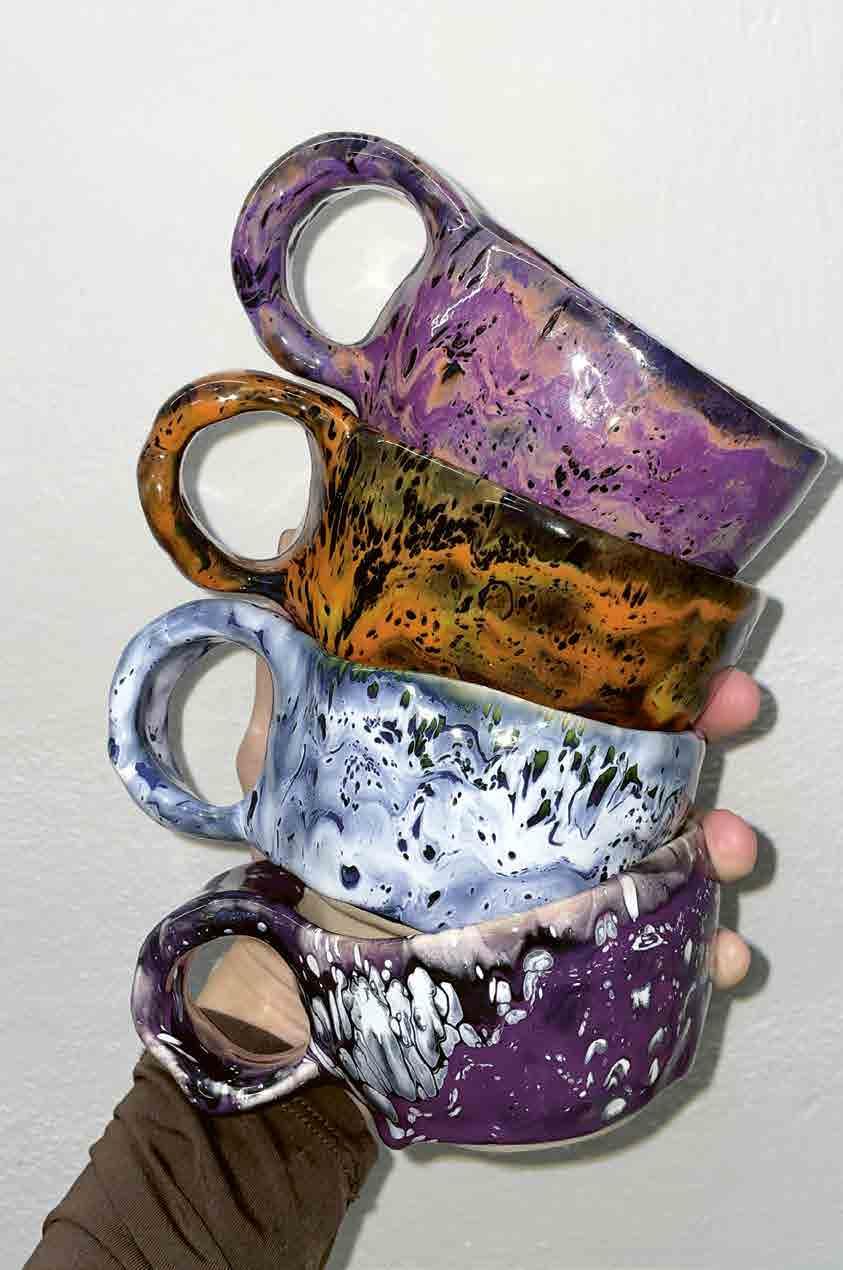 Ručně vyráběné keramické hrnky Hadaikum s míchanou glazurou. Každý kus je originál, objem 200 ml. Více o značce najdete na hadaikum.fun a také v článku na straně 60.