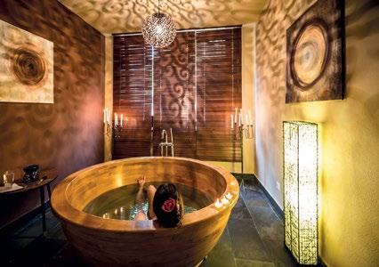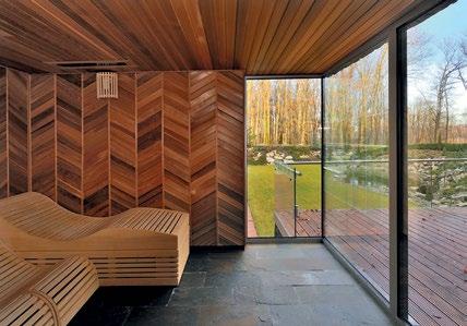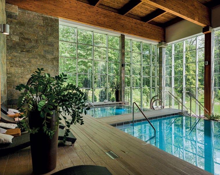 plochami budova citlivě propojuje s okolními lesy a poskytuje tak hostům ojedinělý výhled a neopakovatelnou atmosféru, až po luxusní wellness, které je skutečně obklopené zelení a tak není divu, že i sami zaměstnanci hotelu tvrdí, že “příroda se stěhuje dovnitř”. Ostatně, i sama spolumajitelka dává těmto výrokům za pravdu. “Asi druhý rok po otevření k nám začaly chodit srnky, hlavním vchodem až k welnesovému jezírku. Bylo to v zimě, dávali jsme jim jablka, ovšem nebyl to dobrý nápad, nakonec začaly okusovat okrasné stromky a dodnes je vidět, které byly jejich oblíbené. Takže srnky už nekrmíme, ale občas se nějaká přijde podívat a nedávno si u nás moje kamarádka vyfotila stádo malých divočáků”, uvádí výrok týmu na pravou míru Iveta Machačová. Tudíž až se ve wellness budete kochat výhledem z bazénu či vířivky směrem do přírody, možná spatříte i zvířecí hosty. Otisk lesa je zde zkrátka vidět téměř všude. Ve Wellness & Spa komplexu vás u vchodu přivítá mohutná koruna stromu a vkročíte sem přes speciální chodbu spojenou s masáží chodidel vyzdobenou stromy, které jsou zatřeny včelím voskem. Citlivě zvolené interiérové prvky tak podtrhují záměr majitelů přiblížit se přírodě tzv. na dotek.