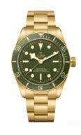 ❼ TUDOR BLACK BAY 58 jsou nádherné potápky v oceli, ale co kdybyste je chtěli v osmnáctikarátovém zlatě a s nepřehlédnutelnou zelenou linkou? Něco podobného zkusil letos i Rolex s Deepsea, kde zlato doplňuje modrá.