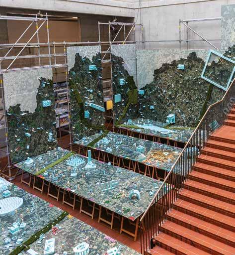 skleněné dílo z dílny světoznámé regionální sklářské firmy Preciosa Lustry Má podobu šroubovice DNA a je vyrobeno z leštěné nerezové oceli a více než padesáti ručně foukaných skleněných tyčí ◌