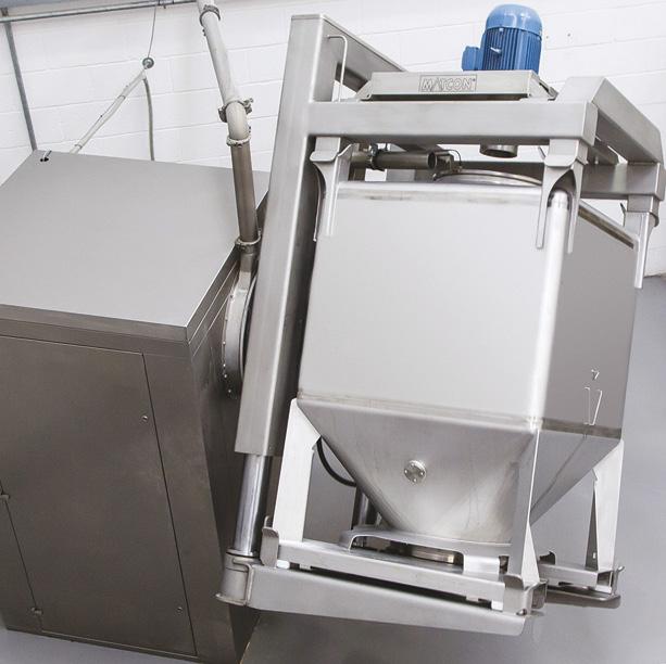Can operators safely and easily access all the corners and joints? Are the paddles/ shafts removable? Are there easy access doors? What safety locking systems are incorporated? • On a fixed mixer, clean-down time between recipes can vary from as little as half an hour for a dry clean between non-allergen recipes, up to taking a full eight-hour shift for a full wet clean and dry. This represents a significant amount of not only waste, but manpower costs as this is usually a labour intensive activity. • With in-bin blending, only the container is cleaned, which is conducted offline. Even if the IBC has a complicated split butterfly valve which needs to be removed for cleaning, this won’t affect the OEE (Overall Equipment