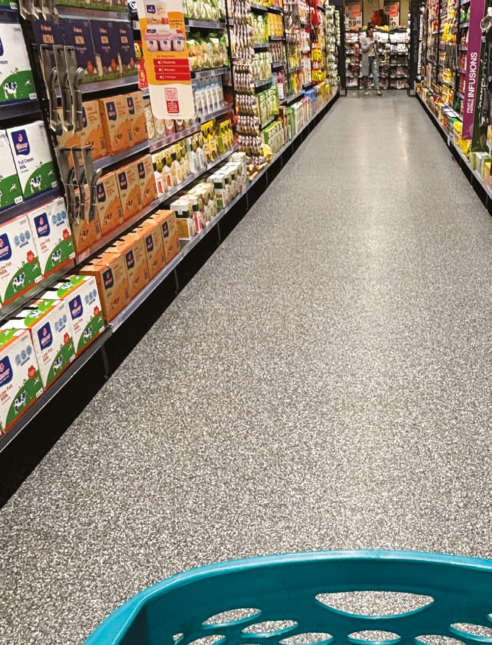 supermarkets, where resilient interlocking PVC composite flooring is typically used to create a smooth, seamless floor.