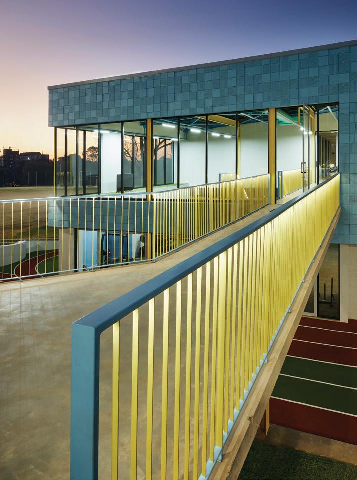 Asher Marcus, principal and founder of Hubo Studio, who designed the complex, says that they envisioned it not as a traditional sports centre housed in a single hall or building, but as “a sports campus” knitted into the greater school campus.