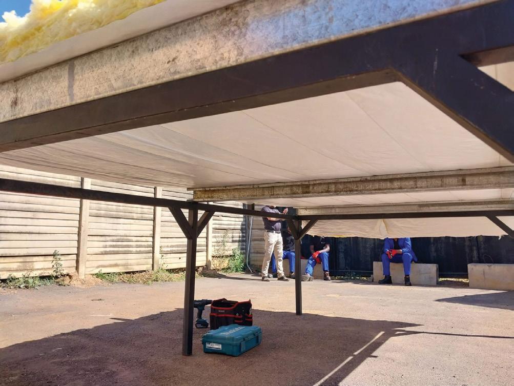 In July 2024, another demonstration day was held and hosted by the Insultrak founders and management with representatives from industry again in attendance. These included members from TIPSASA (Thermal Insulation Products & Systems Association of Southern Africa) including board members, SAMCRA (South African Metal Cladding & Roofing Association), technical representatives of the bulk-faced fibre roof insulation manufacturers in South Africa, technical representatives of secret-fix clip roof sheeting manufacturer in South Africa, representatives of the roof fixing screw manufacturer, and various other attendees.