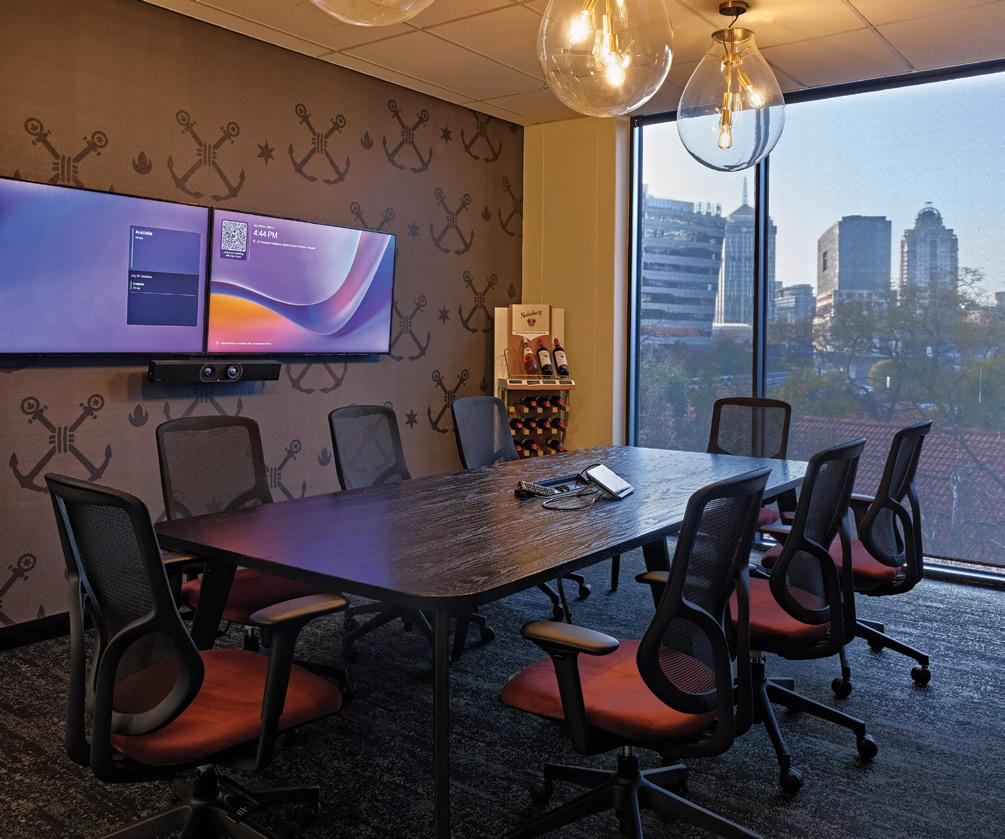 Also on the ground floor, flowing off from this informal gathering space, formal meeting spaces and boardrooms have been designed using the company’s beverage brands as visual collateral. Ströh explains that each brand’s team had a key creative role in designing their feature meeting rooms. “In this way, the teams who use the space are proudly connected to how the business lines they champion are represented in the space,” she says.