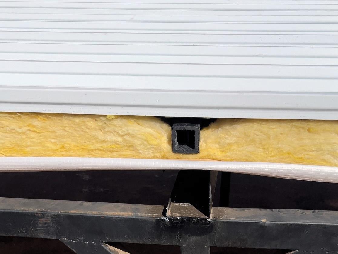 The 135mm thick white-faced fibre roof insulation was already fitted on the test rig as per the product’s specified installation method, ready for the fitment and application of the Insultrak packer, roof sheeting clips, and the roof sheets. The 135mm thick roof insulation was used as this is the thickest faced fibre product manufactured in South Africa and would thereby provide for the worst-case scenario regarding loft of the insulation, stability of the Insultrak packer thereon, and maximum backward pressure on the roof clip system.