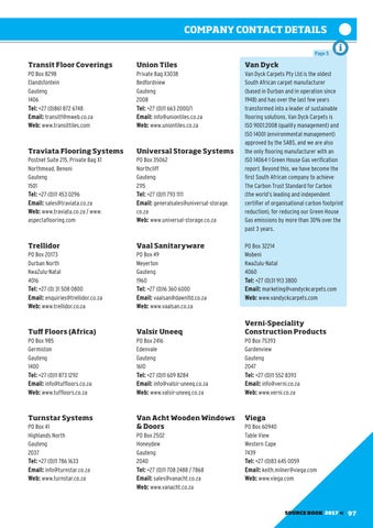 PO Box 32214 Mobeni KwaZulu-Natal 4060 Tel: +27 (0)31 913 3800 Email: marketing@vandyckcarpets.com Web: www.vandyckcarpets.com