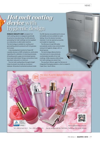 Hot melt coating device with hygienic design ROMACO INNOJET’S GMP compliant hot