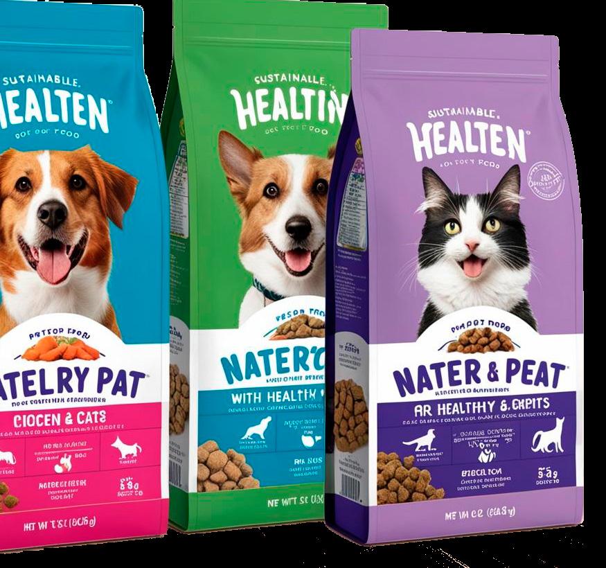 control, ensuring optimal product conditions during production and transit. Sustainability and technological integration: Technology plays a significant role in facilitating sustainable practices within the industry. Intelligent packaging that incorporates sensors, RFID tags, and thermochromic ink ensures product safety and freshness. The use of smart packaging technology enhances consumer engagement by offering real-time product insights and storage information. Meanwhile, modifications in material science allow the creation of packaging that’s both biodegradable and suited for the preservation needs of fresh and frozen pet products.