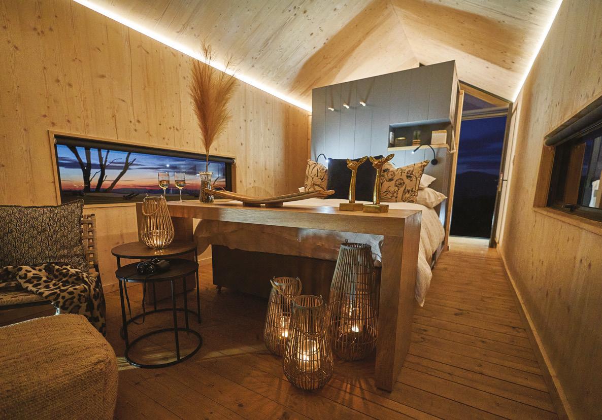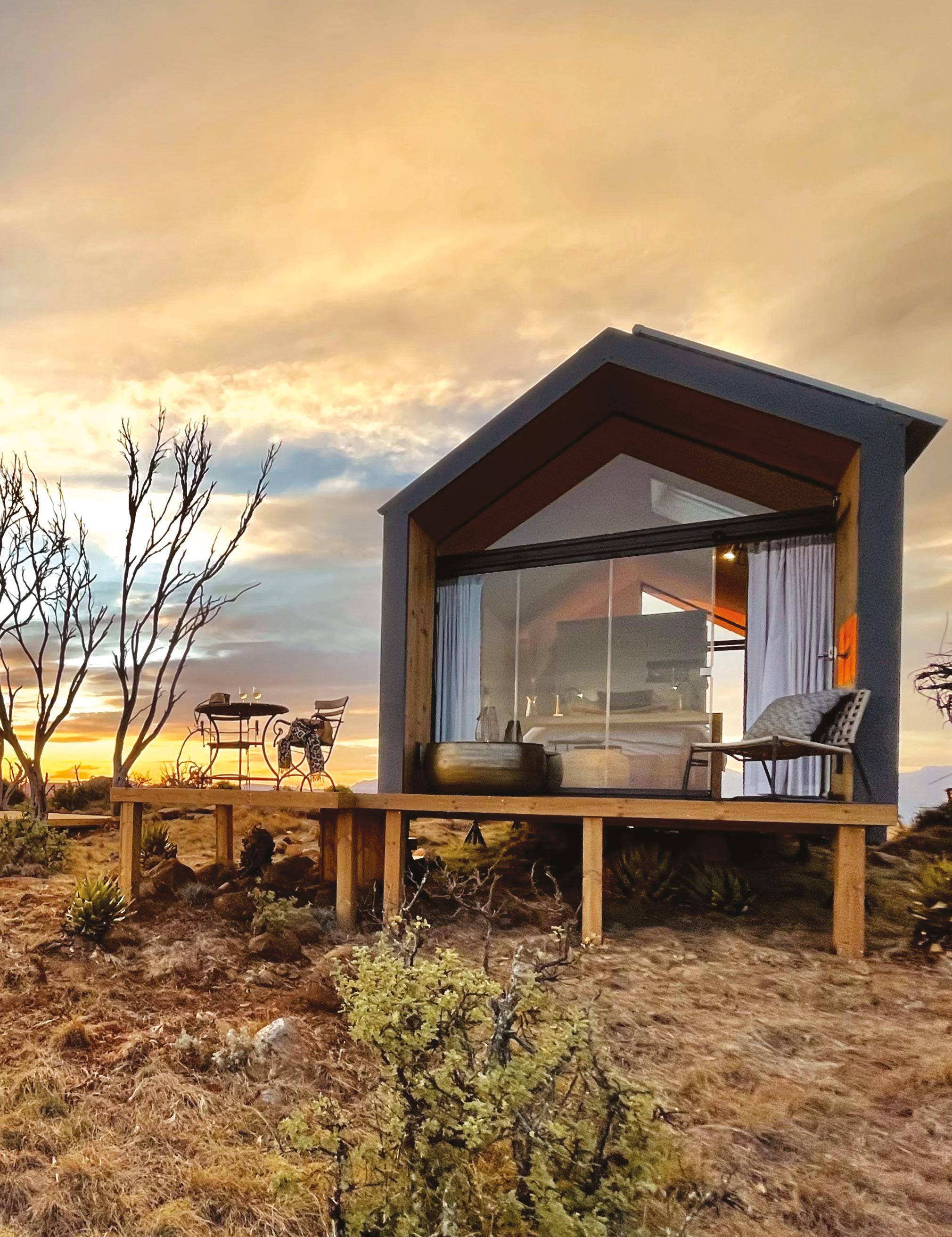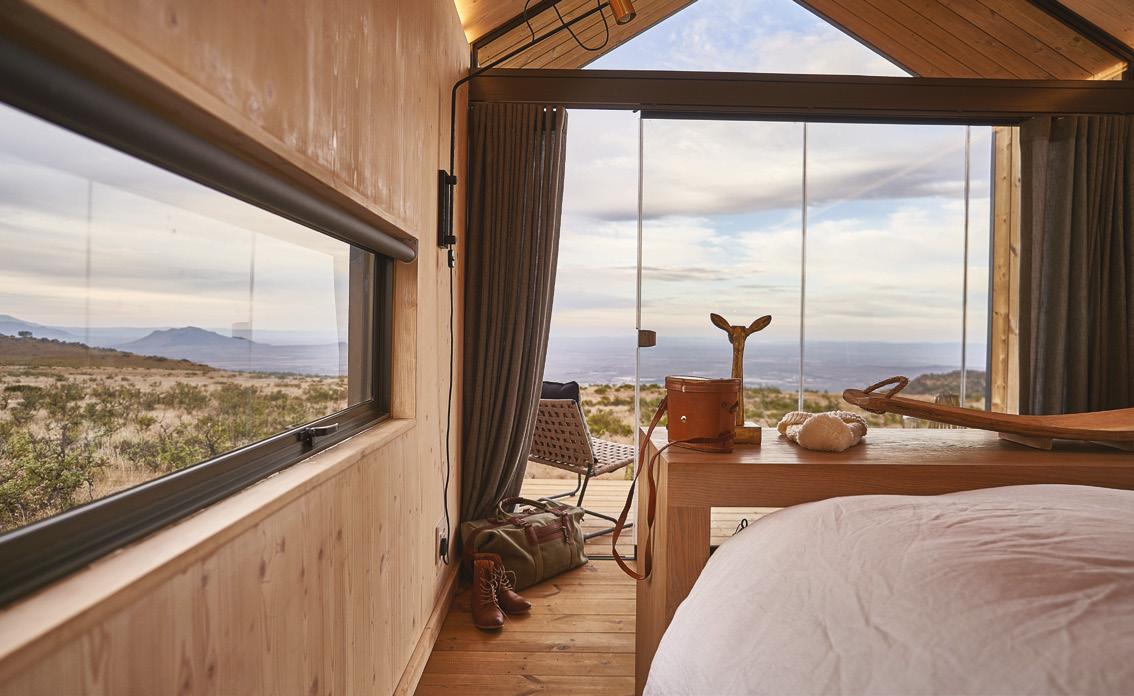The pods have been designed with a light footprint, in line with Mount Camdeboo’s conservation and environmentally conscious ethos. As Buchanan explains, “Conservation is at the core of their design, as they are completely selfsufficient, movable and rest gently in the landscape, having minimal impact on their surroundings.”