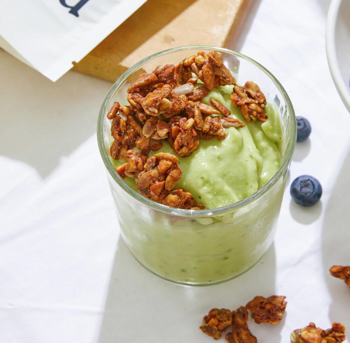 You can never go wrong with a simple green smoothie, especially when topped with granola!