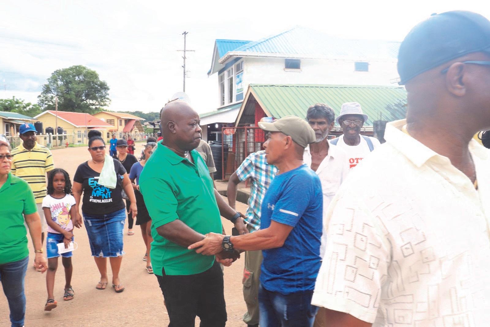 PNCR Leader Mr. Aubrey C. Norton, MP interacts with a resident of South Vryheid’s Lust during a walkabout in the area on Wednesday 31st May 2023.