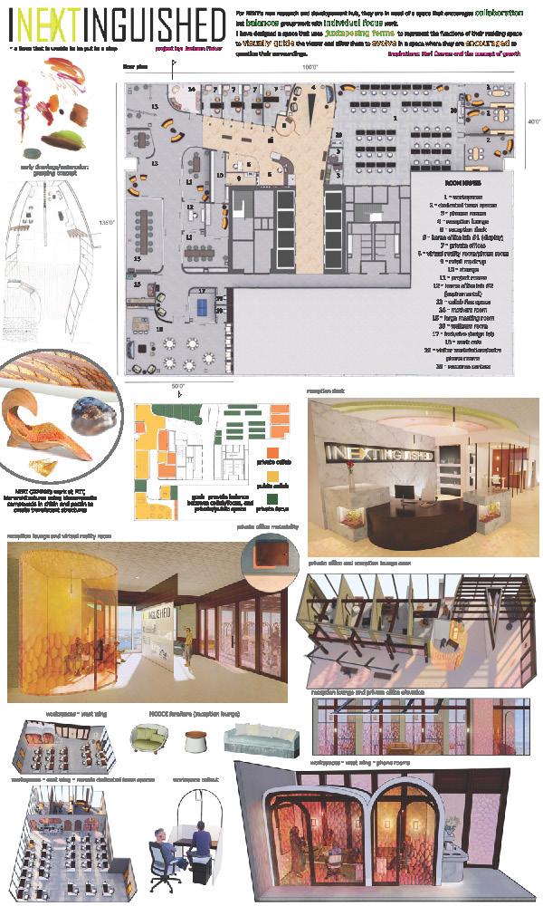 64 Eisenberg, Audrey M | NEXT The Visionary 68 Elkman, Emma S. | NEXT 72 Fisher, Jackson | NEXT Inguished 76 Forrer, Sophie | Synthesis 80 Gillihan, Lily K | NEXT Robotics 84 Going, Bailey J | Seaport Innovations 88 Goins, Hollie L | Neighborhood 92 Hagedorn, Caitlin E | The Power of What’s 96 Hendrick, Chloe R | NEXT R&D Hub 100 Isbell, Eden A | NEXT Robotics 104 Jeane, Anna E | Play NEXT 108 Knopp, Alexa | NEXT Gen Office 112 Lang, Emily R | NEXT Robotics Co. 116 Laxton, Madison T. | Intrinsic Workspace 122 Lemons, Ally J | Creating ConNEXTions 128 Mahler, Zade C | NEXT 3