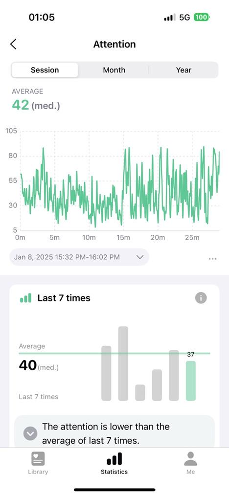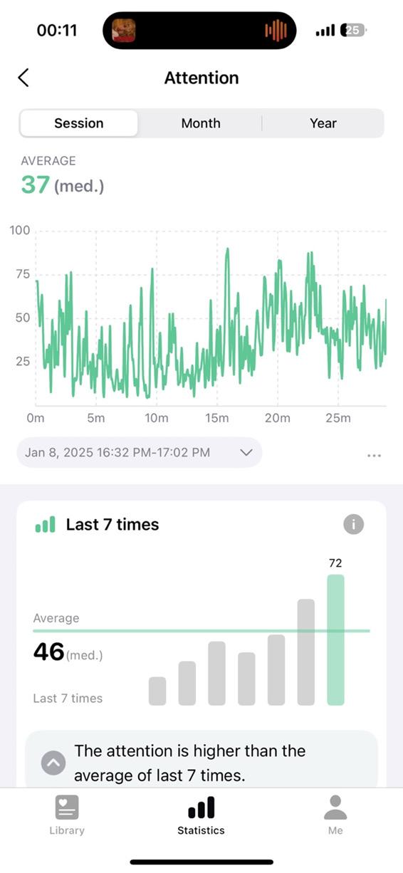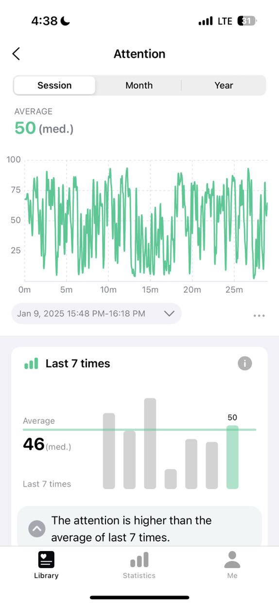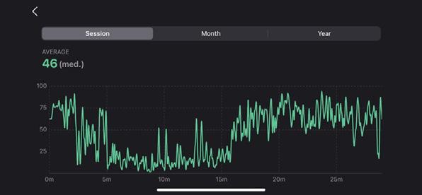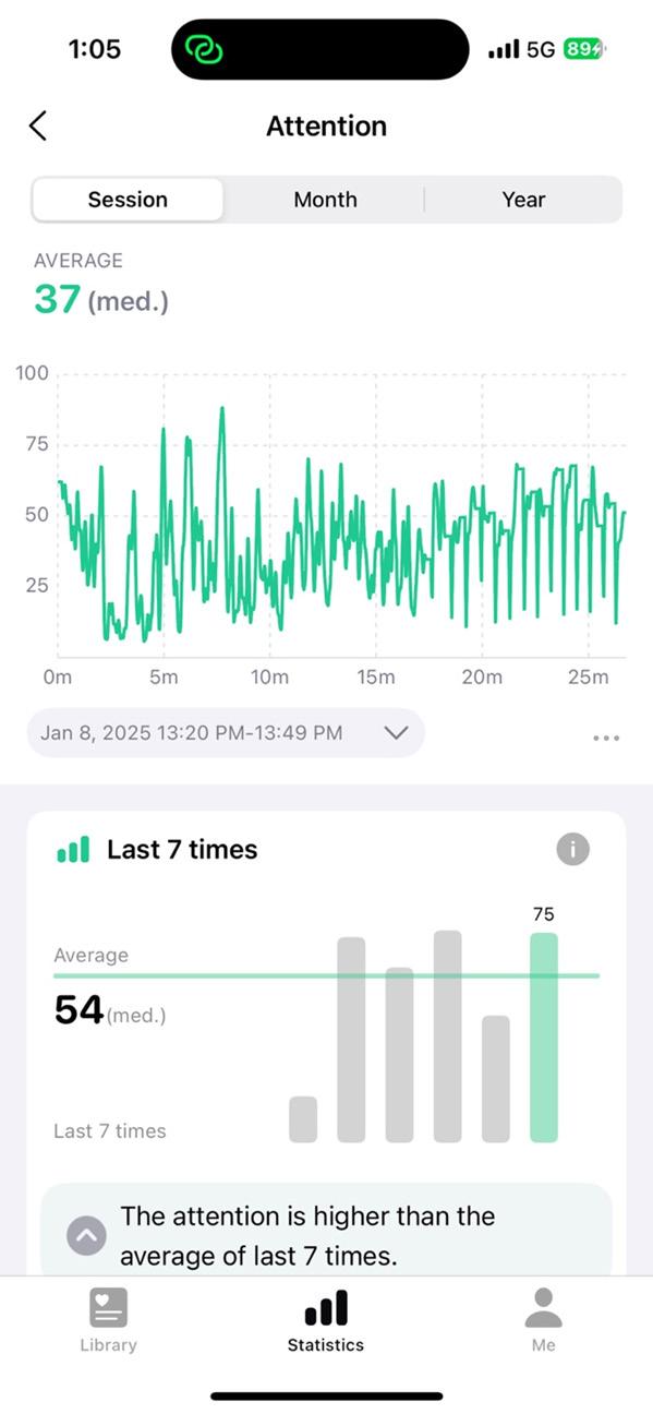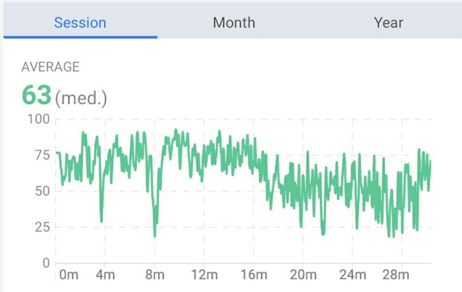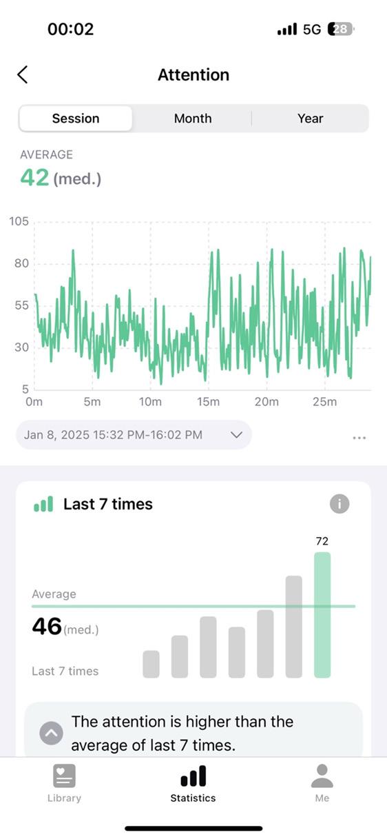 • 1단계를 플레이할 때보다 3, 5단계를 플레이할 때 집중도가 감 소 > 갑자기 어려운 레벨을 플레이하여 의지가 감소하였다고 판단