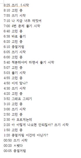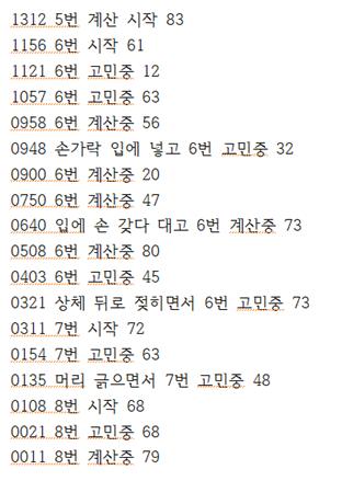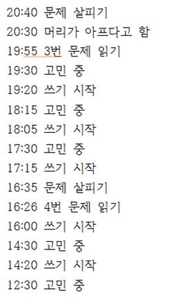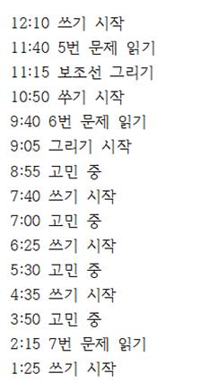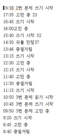 피실험자 모두 같은 시간대에 같은 환경에서 실험을 진행하였다 특별한 대화가 실험 도중에 있 지도 않았다